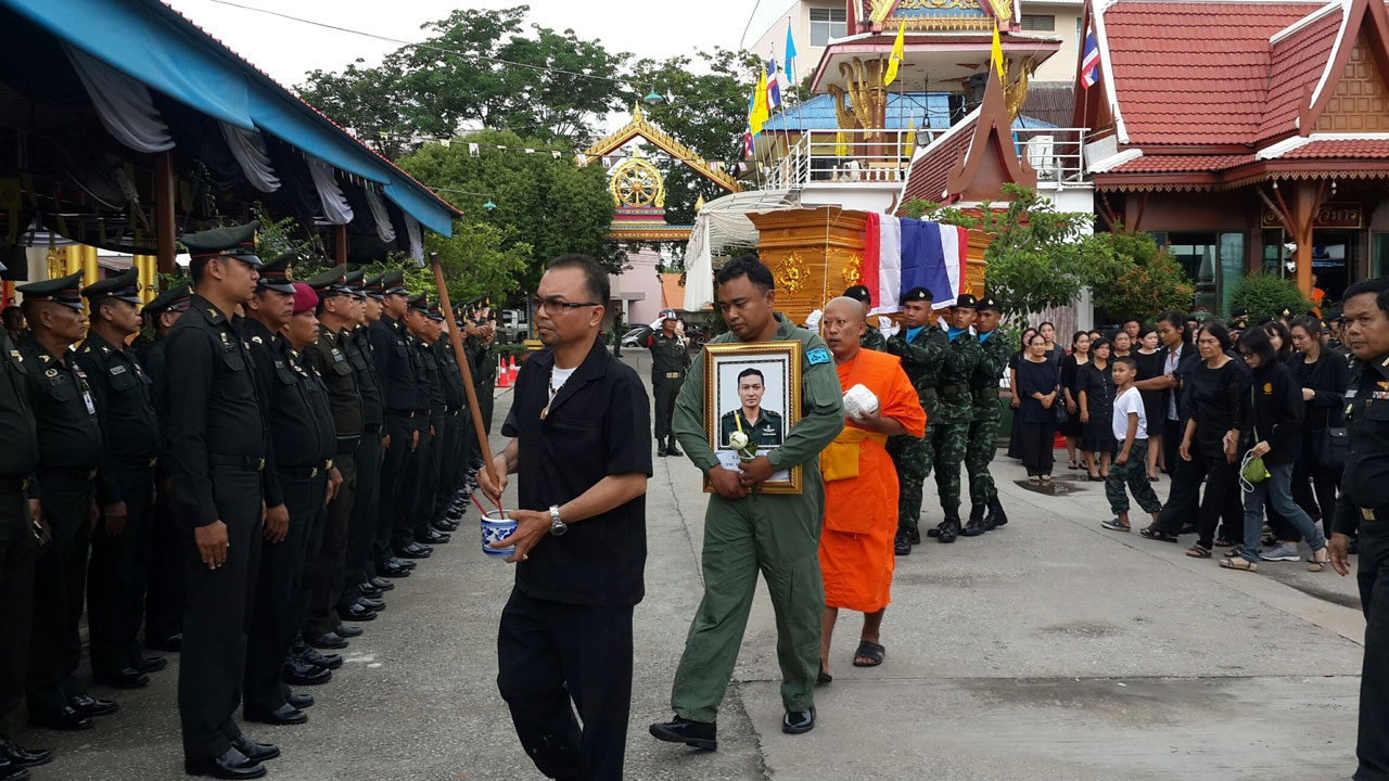 หลังจากนั้นได้มีการเคลื่อนย้ายศพผู้เสียชีวิตแยกไปตามวัดต่างๆ ดังนี้ คือ ร.อ.สุทัน อ่องเมือง (นักบินที่ 1) ตั้งศพที่ วัดคูหาสวรรค์ สวดอภิธรรมตั้งแต่วันที่ 17-19 ส.ค. 59 พระราชทานเพลิงศพ ในวันเสาร์ที่ 20 ส.ค. 59 ,จ.ส.อ.ชัยศักดิ์ดา ทาโส (ช่างเครื่อง) ตั้งศพที่ วัดมะขามเตี้ย สวดอภิธรรมตั้งแต่วันที่ 17-20 ส.ค. 59 พระราชทานเพลิงศพ ในวันอาทิตย์ที่ 21 ส.ค. 59 และ จ.ส.ต.มงคลชัย รู้งาน (ช่างเครื่อง) ตั้งศพที่ วัดวังทองวนาราม สวดอภิธรรมตั้งแต่วันที่ 17-19 ส.ค. 59 พระราชทานเพลิงศพ ในวันเสาร์ที่ 20 ส.ค. 59