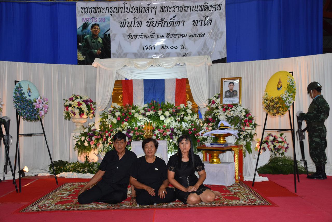 ขณะที่ศาลาการเปรียญวัดมะขามเตี้ย ต.หัวรอ อ.เมืองพิษณุโลก นายธนากร อึ้งจิตรไพศาล รองผู้ว่าราชการจังหวัดพิษณุโลก เป็นผู้อัญเชิญพวงมาลาพระราชทาน นำมาวางหน้าหีบศพ พ.ท.ชัยศักดิ์ดา ทาโส ช่างเครื่อง 1 โดยมีข้าราชการทหาร ตำรวจ และพลเรือน แต่งเครื่องแบบชุดขาวร่วมตั้งแถวรอรับพวงมาลาพระราชทาน ก่อนที่จะมีพิธีสวดพระอภิธรรมในเวลา 20.00 น. เช่นเดียวกัน