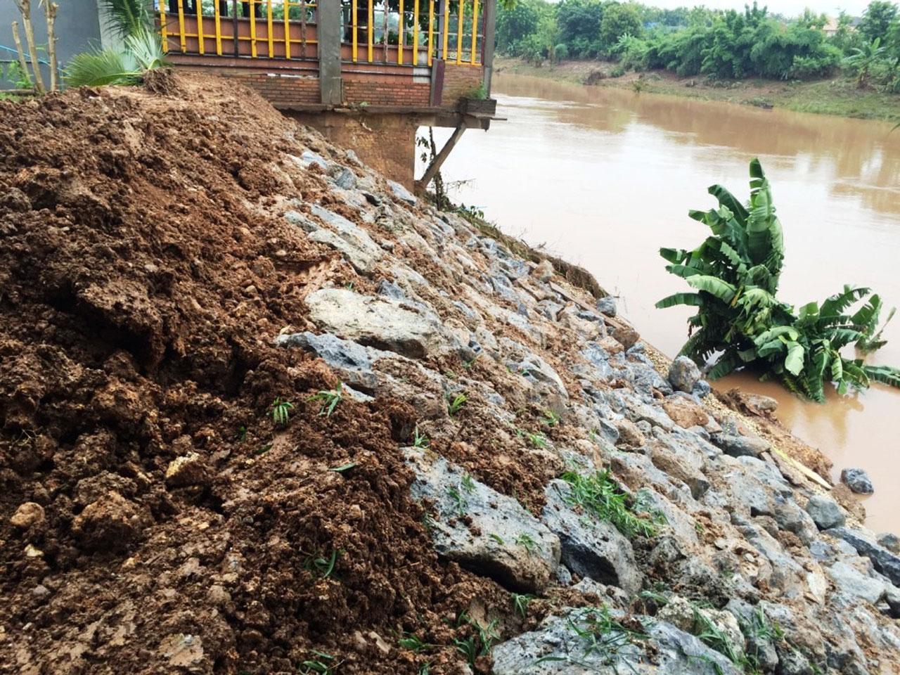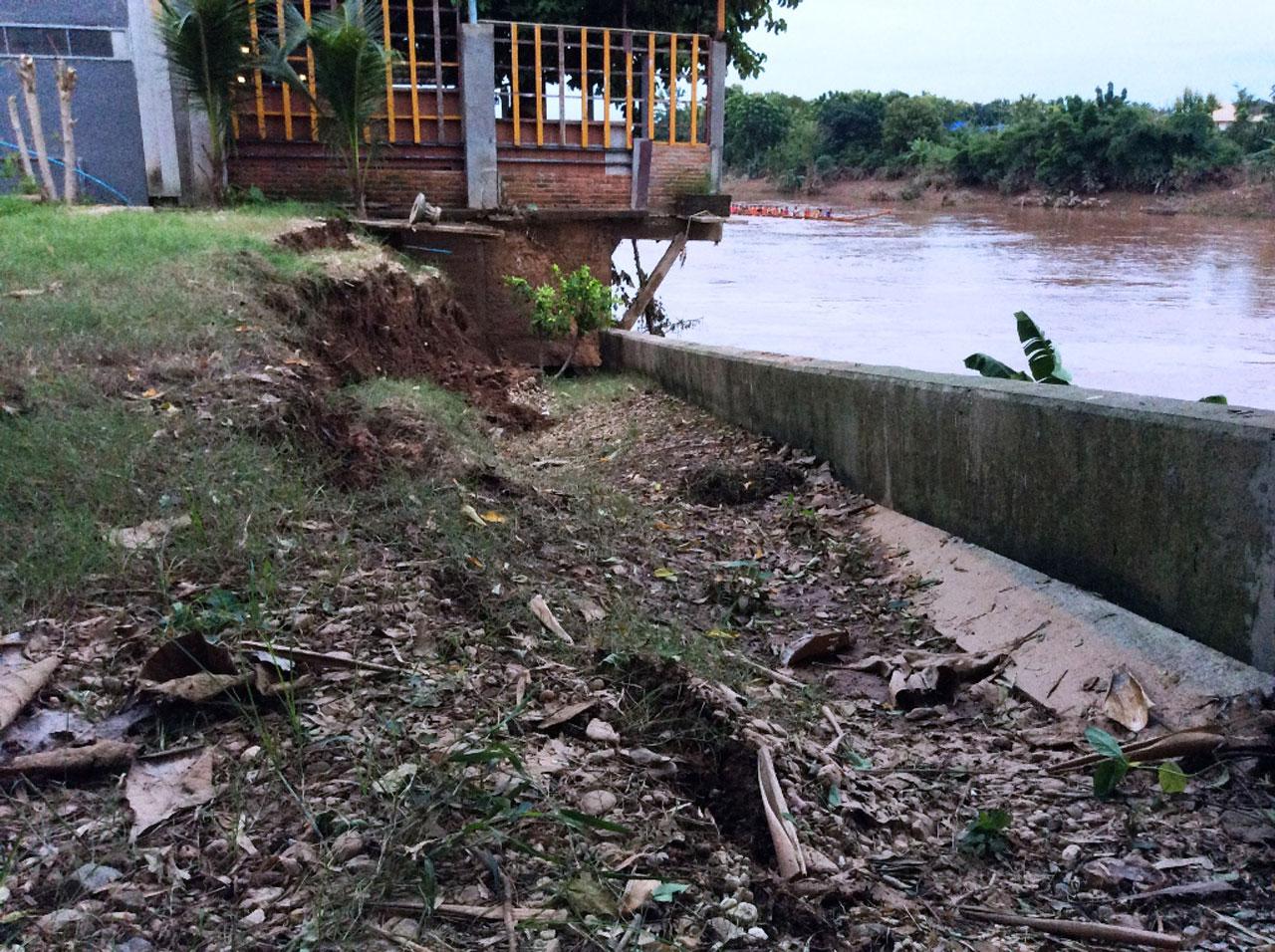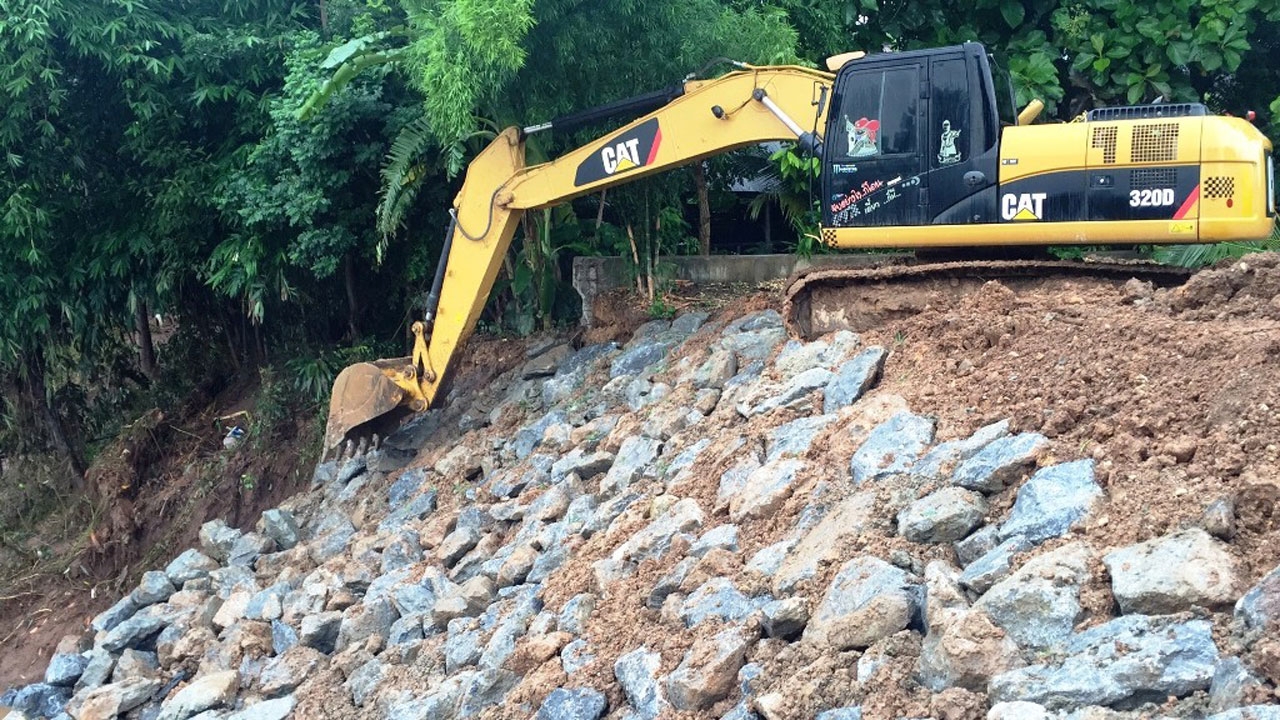 เร่งซ่อมพนังกั้นน้ำบ้านสวนตาลล่าง กระแสน้ำพัดทรุด