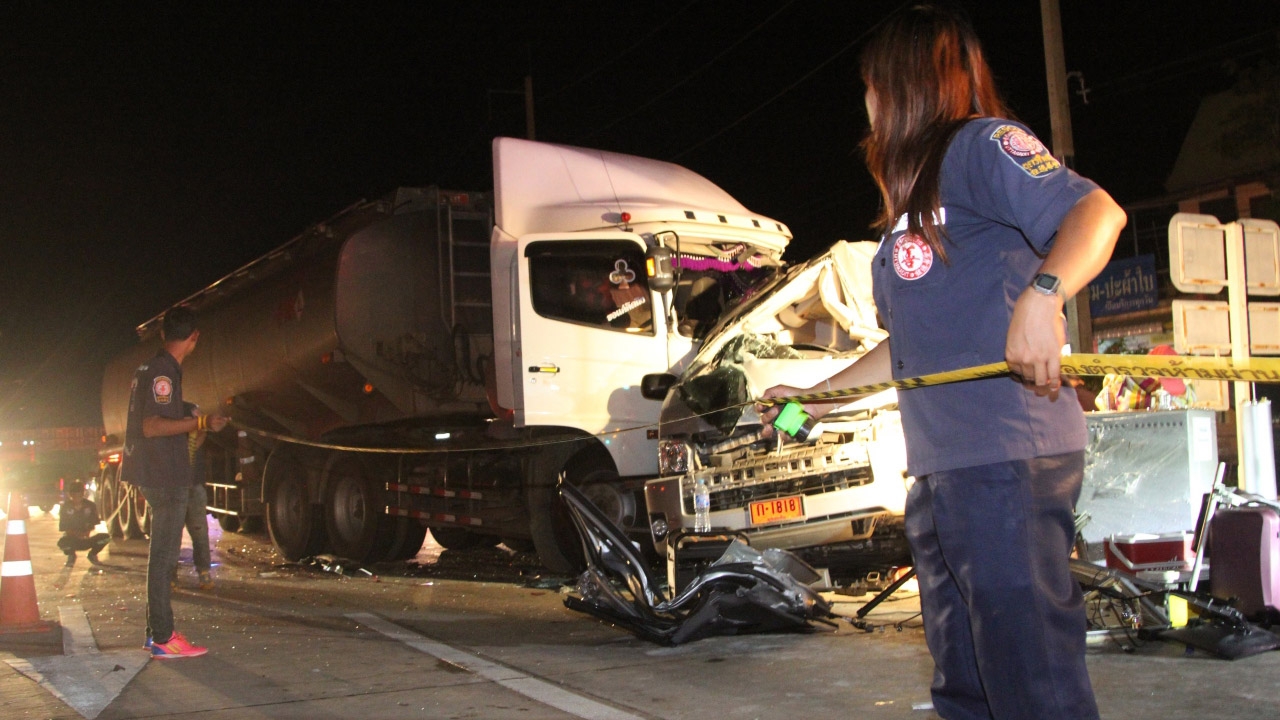 รถบรรทุกน้ำมัน เบรกไม่อยู่ ชนยับรถติดไฟแดง 3 คันรวด เจ็บ 4 ราย ที่อุตรดิตถ์ ส่วนโชเฟอร์อาศัยช่วงชุลมุนหลบหนี...