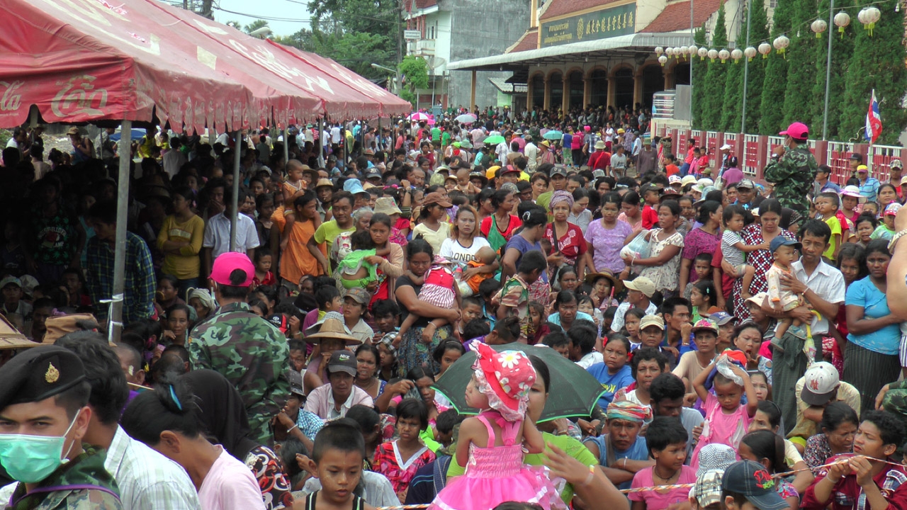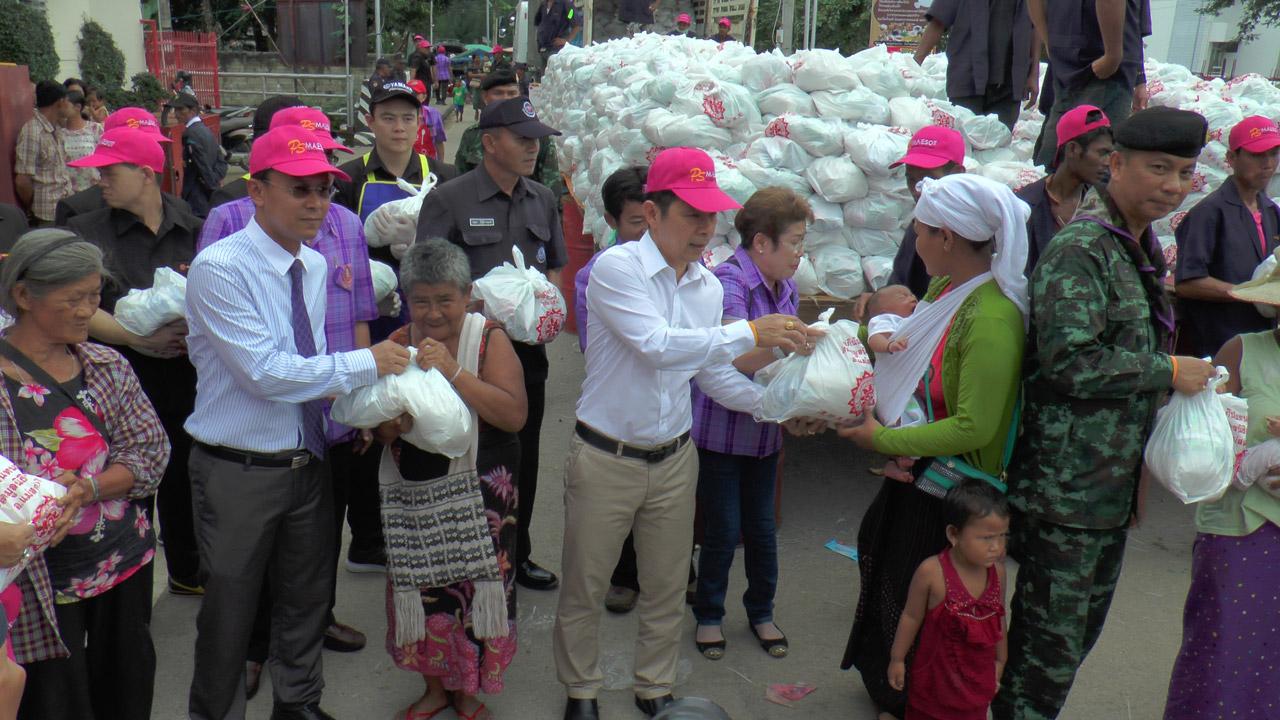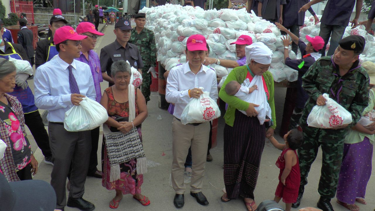 เมื่อเวลา 16.00 น. วันที่ 23 สิงหาคม ที่บริเวณศาลเจ้าจีนปุงเฒ่ากงม่า แม่สอดมูลนิธิสามัคคีการกุศลเขตเทศบาลนครแม่สอด อ.แม่สอด จ.ตาก นายสมโชค มีมะแม ผู้พิพากษาหัวหน้าศาลจังหวัดแม่สอด นายธนยศ ปานขาว นายอำเภอแม่สอด พันเอกไมตรี ชูปรีชา รองผู้บังคับหน่วยเฉพาะกิจกรมทหารราบที่ 4 นายสุชาติ ตรีรัตน์วัฒนา ประธานแม่สอดมูลนิธิสามัคคีการกุศล นายสุชาติ จึงกิจรุ่งโรจน์ ประธานที่ปรึกษากิตติมศักดิ์ พร้อมด้วยคณะกรรมการศาลเจ้า หัวหน้าส่วนราชการต่างๆ ร่วมพิธีมอบข้าวสาร อาหารแห้ง เครื่องอุปโภค ในพิธีทิ้งกระจาด ให้ทาน หรือซิโกว ซึ่งเป็นประเพณีของชาวจีนใน อ.แม่สอด ที่จัดขึ้นเป็นประจำทุกปีโดยบรรยากาศเป็นไปอย่างคึกคักและเนืองแน่นจนล้นหลามจนต้องปิดถนนบริเวณใกล้เคียง มีราษฎรผู้ยากไร้ ชาวไทย และชาวเมียนมาจำนวนกว่า 20,000 คน เดินทางข้ามมาจากฝั่งเมียวดี รวมทั้งที่อยู่ใน อ.แม่สอด จ.ตาก และขณะแจกทาน นางมะเมี๊ยะ ชาวเมียนมา ซึ่งกำลังท้องแก่ได้ร้องตะโกนเรียกให้คนช่วยบอกว่ากำลังจะคลอดลูก เจ้าหน้าที่กู้ภัยที่อยู่ในพิธีต่างต้องรีบนำเปลมานำร่างส่งโรงพยาบาลแม่สอดได้ทันท่วงที