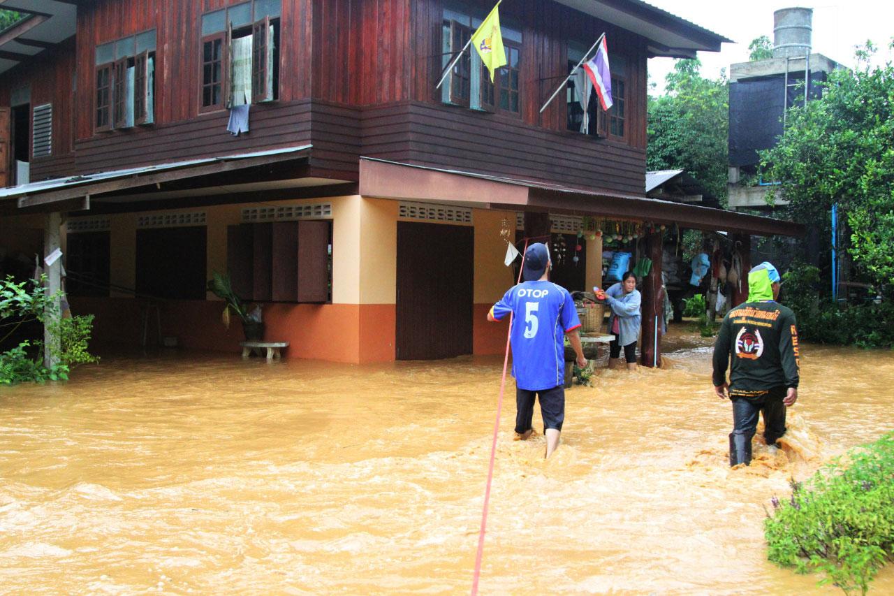 จากสถานการณ์ฝนตกหนักตั้งแต่เมื่อคืนที่ผ่านมา ทำให้น้ำป่าจากบ้านห้วยไร่ จ.แพร่ สมทบกับน้ำจากห้วยเกียงผา จนทำให้น้ำล้นตลิ่งไหลมาท่วมบ้านเรือนประชาชน ในพื้นที่หมู่ 10 บ้านปางต้นผึ้ง และหมู่ 7 บ้านไฮ้ฮา ต.บ้านด่านนาขาม อ.เมือง จ.อุตรดิตถ์ โดยทางเจ้าหน้าที่ทหารมณฑลทหารบกที่ 35 ได้ลงพื้นที่ช่วยเหลือชาวบ้านเป็นการเร่งด่วน เนื่องจากมีกระแสน้ำที่ไหลเชี่ยวและน้ำขึ้นเร็ว มีบ้านเรือนถูกน้ำท่วม 20 กว่าหลังคาเรือน นอกจากนี้ ยังเข้าท่วมสวนเงาะ ลองกอง และกล้วย ได้รับความเสียหาย โดยมีการเตรียมความพร้อมตลอด 24 ชั่วโมง หากมีฝนตกลงมาอีก อาจทำให้น้ำป่าไหลเข้าท่วมบ้านเรือนประชาชน