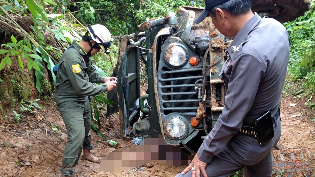 เจ้าของโรงงานทำเฟอร์นิเจอร์ไม้ กลุ่มชมไพรออฟโรดนนทบุรี นั่งรถจี๊ปเดินทางกลับจากปลูกป่าบนเขาค้อ จ.เพชรบูรณ์ ขณะรถแล่นลงเขา ถนนเละเป็นโคลน เกิดลื่นตกเขาพลิกคว่ำ ร่างกระเด็นโดนตัวรถทับร่างเละดับสยอง...
