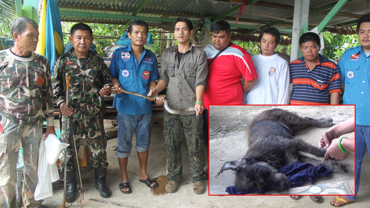 งูเห่าปลวกตัวเขื่อง ยาว 1.80 ม. เข้าบ้านยายวัย 74 ปี ที่ จ.เพชรบูรณ์ สุนัขที่เลี้ยงไว้เข้าสู้กับงู ถูกพ่นพิษใส่-ฉก ตายแทนเจ้าของ แจ้ง จนท.มาจับไว้ได้ เตรียมปล่อยคืนสู่ธรรมชาติต่อไป
