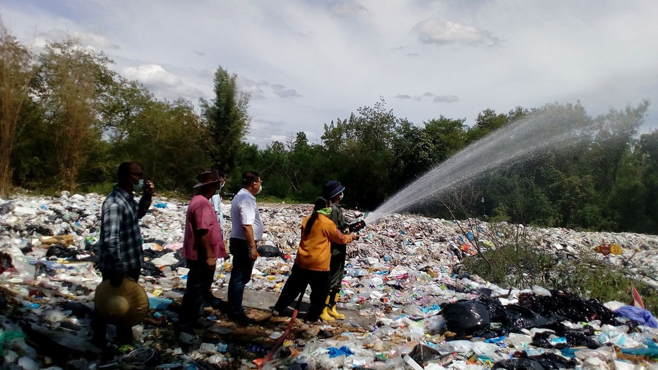 ด้าน นายนิพนธ์ จิตตปัญญา รองนายกเทศมนตรีตำบลยุหว่า กล่าวว่าหลังจากที่ปัญหานี้ได้เสนอ และได้รับมอบสารจุลินทรีย์ ทางเทศบาลจึงได้สนับสนุนรถดับเพลิงขนาดบรรทุกน้ำ 4 พันลิตร ผสมสารจุลินทรีย์เข้าทำการพ่นคลุมกองขยะ ทั้งสามจุด 3 เที่ยว เป็นจำนวนถึง 12000 ลิตร ครอบคลุมพื้นที่กองขยะที่ส่งกลิ่นเหม็น หลังการพ่นสารจุลินทรีย์แล้วเสร็จ ภายหลัง 1 ชั่วโมง กลิ่นเน่าเหม็นก็เริ่มจางลดลงไปได้ หายใจได้คล่องขึ้นโดยไม่ต้องสวมหน้ากากกรองอากาศ ถือว่าเป็นการช่วยบรรเทาความเดือดร้อนให้กับประชาชนในเบื้องต้น