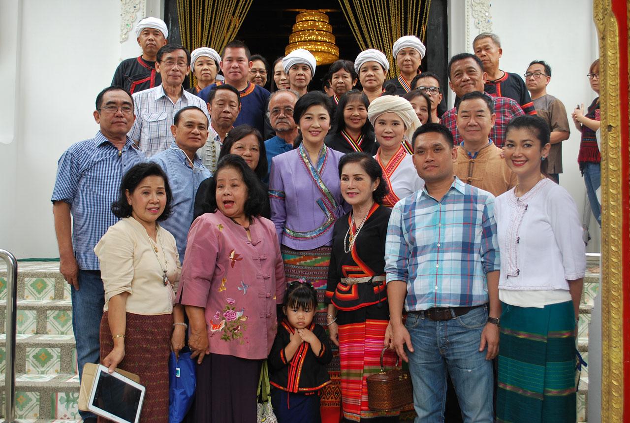 เมื่อเวลา 10.00 น. วันที่ 11 ก.ย. 59 ที่วัดศรีมุงเมือง ต.ลวงเหนือ อ.ดอยสะเก็ด จ.เชียงใหม่ นางสาวยิ่งลักษณ์ ชินวัตร อดีตนายกรัฐมนตรี เดินทางมาเป็นประธานทอดผ้าป่าสามัคคีที่วัด ท่ามกลางสายฝนที่ตกลงมาอย่างหนัก อีกทั้งไฟฟ้าดับนานนับชั่วโมง แต่แฟนคลับร่วม 200 คนของอดีตนายกฯ ยังคงทยอยพากันมาต้อนรับอย่างเนืองแน่น ถึงแม้ว่าฝนจะตกลงมาก็ตาม บางคนก็เตรียมร่มมาเพื่อรอถ่ายรูป และจับมือกับอดีตนายกรัฐมนตรี นอกจากนี้ ยังมีอดีต ส.ส.พรรคเพื่อไทย มารอให้การต้อนรับ อาทิ นายวิทยา ทรงคำ อดีต ส.ส.เขต 4 เชียงใหม่ นายกฤษดาภรณ์ เสียมภักดี อดีต ส.ส.เขต 6 นายศรีเรศ โกฎิคำลือ อดีต ส.ส.เขต 10 นายนพคุณ รัฐผไท อดีต ส.ส.เขต 7 นายประสิทธิ์ วุฒินันชัย อดีต ส.ส.เขต 5 นอกจากนี้ ยังมี นายสงวน พงษ์มณี อดีต ส.ส.เขต 2 จ.ลำพูน นายรังสรรค์ มณีขัติ อดีต ส.ส.เขต 1 จ.ลำพูน นายวรชัย เหมะ อดีต ส.ส.พรรคเพื่อไทย มารอให้การต้อนรับอีกด้วย