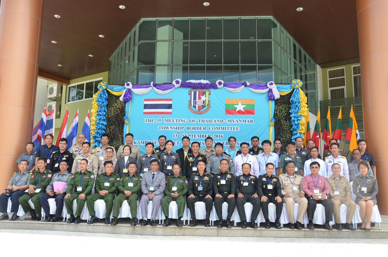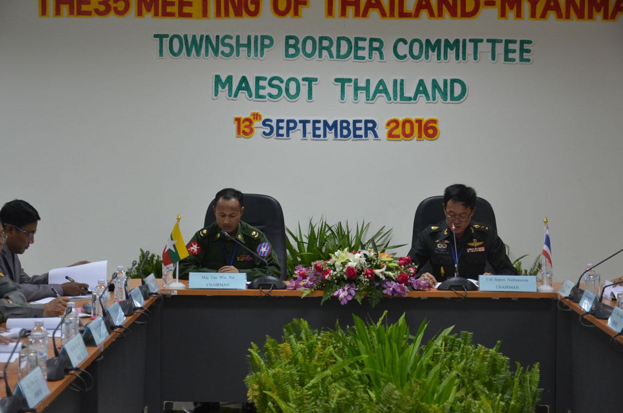 ผู้สื่อข่าวรายงานเมื่อเวลา 10.30 น. วันที่ 13 ก.ย.59 ที่ห้องประชุมบุษราคัม มหาวิทยาลัยราชภัฏกำแพงเพชร แม่สอด จ.ตาก มีการประชุมคณะกรรมการชายแดนส่วนท้องถิ่น ไทย-เมียนมา (TBC) ครั้งที่ 35 ซึ่งฝ่ายไทยเป็นเจ้าภาพ โดยมี พ.อ.โสภณ นันทสุวรรณ ผู้บังคับหน่วยเฉพาะกิจกรมทหารราบที่ 4 เป็นประธาน และคณะประกอบด้วย พ.อ.อภิวิศน์ สุธรรมวรโรจน์ ผบ.นพค.ที่ 33 พ.อ.กฤต พันธะสา ผู้บังคับหน่วยเฉพาะกิจกรมทหารพรานที่ 35 พ.อ.ก่อพงศ์ ทรงศิลป์ ผู้อำนวยการกองกิจการชายแดนไทย-เมียนมา พ.อ.เฉลิม สีเจริญ รองเสนาธิการมณฑลทหารบกที่ 310 ตรวจคนเข้าเมืองตาก นายประสงค์ หล้าอ่อน นายอำเภอพบพระ นายศราวุธ ทังดิน ปลัดความมั่นคงอำเภอแม่สอด เข้าร่วมประชุม ด้านพม่ามี พ.ต.ตานวินไหน่ ผบ.พัน.คร.310 เป็นประธานฝ่ายเมียนมา