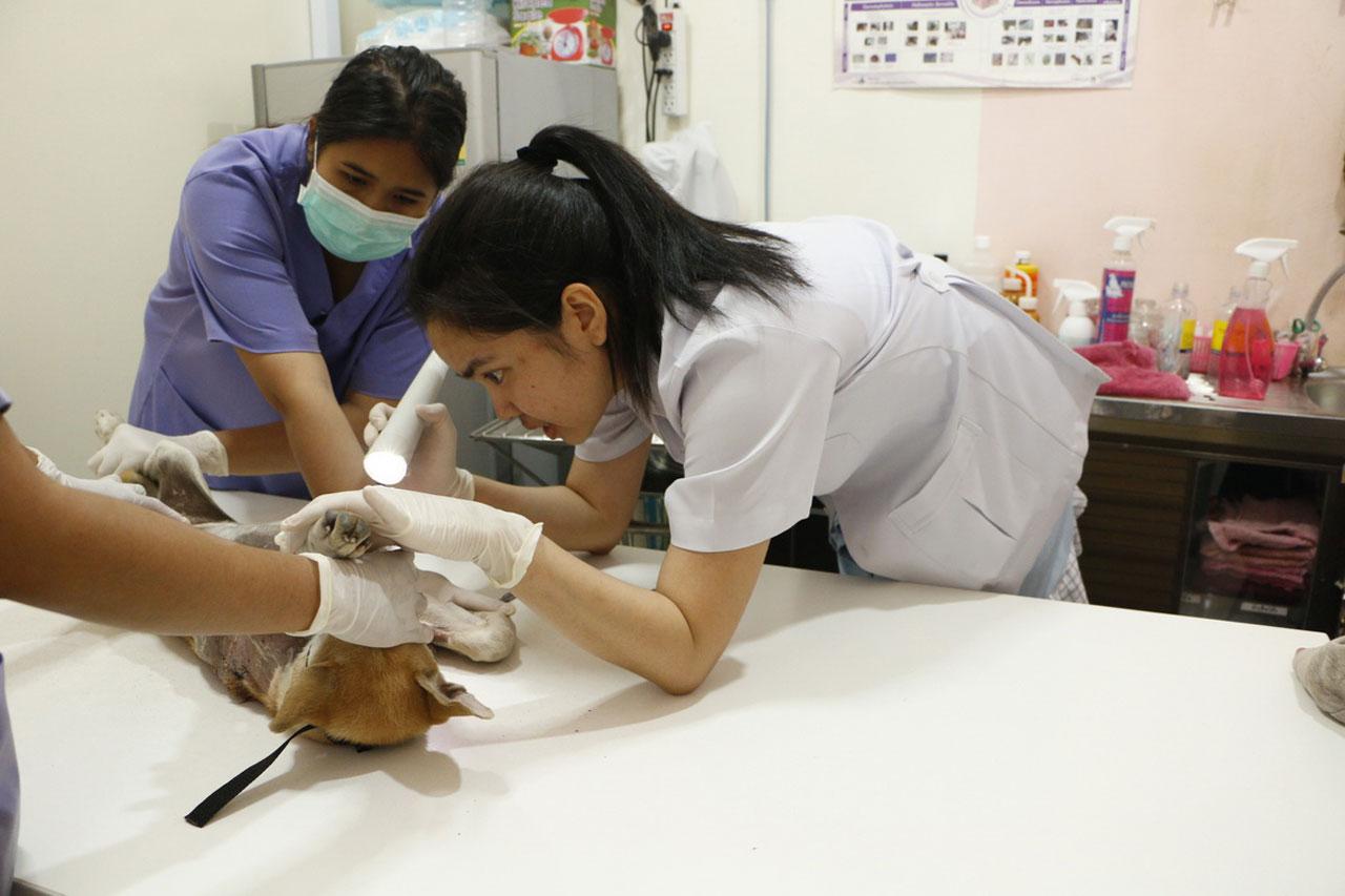 สาวกำแพงเพชร พาน้องหมาวัย 5 เดือนที่ถูกฟันเหวอะ เข้าพบสัตวแพทย์รักษาอาการต่อ ดีใจ เจ้าของ ร.ร.เอกชนชื่อดังของจังหวัดรับไปดูแลต่อ พร้อมปิดรับบริจาคเงิน แต่ผู้ใจบุญสามารถบริจาคอาหารได้