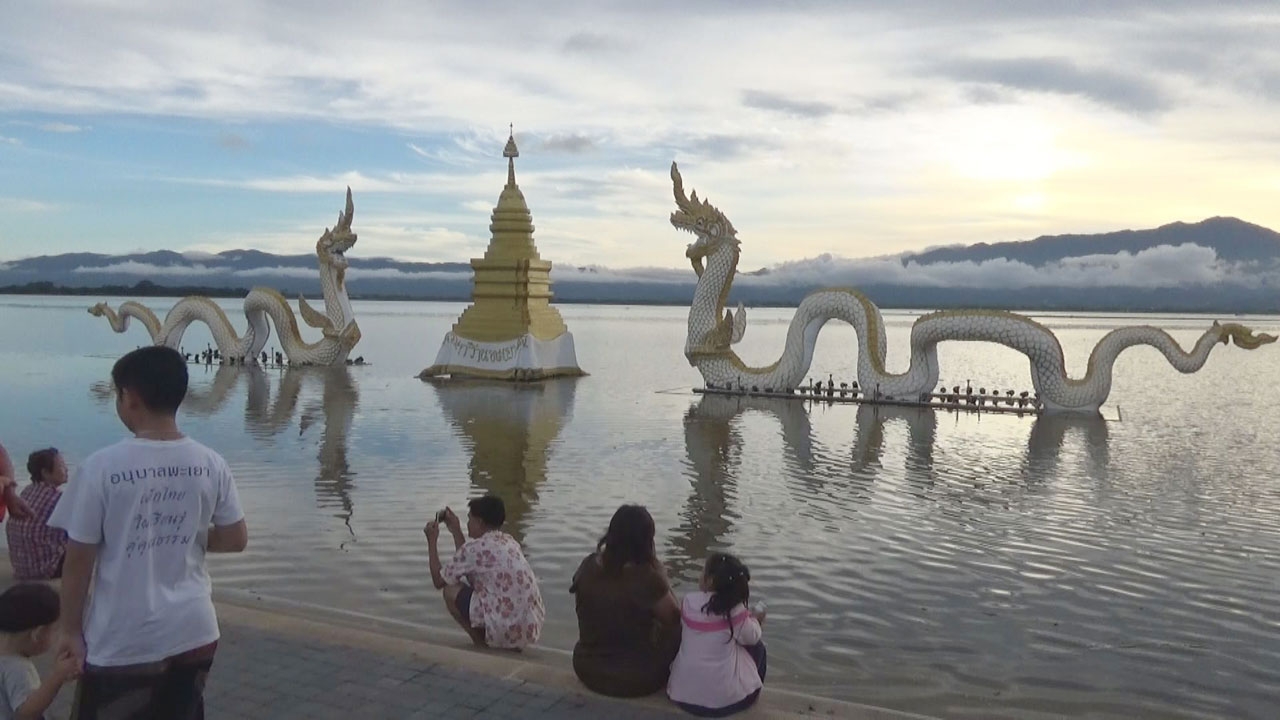 เมื่อวันที่ 21 ก.ย.59 ผู้สื่อข่าวรายงานว่า บรรยากาศการท่องเที่ยวกว๊านพะเยา ขณะนี้เต็มไปด้วยผู้คนตลอดจนนักท่องเที่ยวทั้งชาวไทยและชาวต่างชาติพากันมาเที่ยวชมดูกว๊านพะเยา หลังจากที่มีปริมาณน้ำมากขึ้นจนปริ่มตลิ่ง แสงอาทิตย์กระทบกับคลื่นน้ำในกว๊านพะเยาที่ทำให้ดูสวยงามทั้งในตอนเช้าและตอนเย็น ทำให้บริเวณกว๊านพะเยาหน้าอนุสาวรีย์พ่อขุนงำเมือง และหน้าลานพญานาคมีผู้คนมาดูชมน้ำกว๊านพะเยา และดูพญานาคที่เป็นสัญลักษณ์คู่กับกว๊านพะเยาซึ่งตั้งลอยน้ำริมกว๊านพะเยา ที่ลำตัวพญานาคลอยบนผิวน้ำเหมือนกำลังเล่นน้ำจนบรรดานักท่องเที่ยวถ่ายรูป และเซลฟี่เป็นที่ระลึก ทำให้กว๊านพะเยาเต็มไปด้วยผู้คนตลอดทั้งวัน โดยเมื่อมองไปทางด้านทิศตะวันตก จะมีภูเขาดอยหลวง และท้องฟ้าจะเต็มไปด้วยก้อนเมฆเป็นฉากหลัง มองดูแล้วเกิดความสวยงามเป็นธรรมชาติ ส่วนในตอนเย็นจะดูพระอาทิตย์ตกลับดอยหลวงหรือดอยหนอก