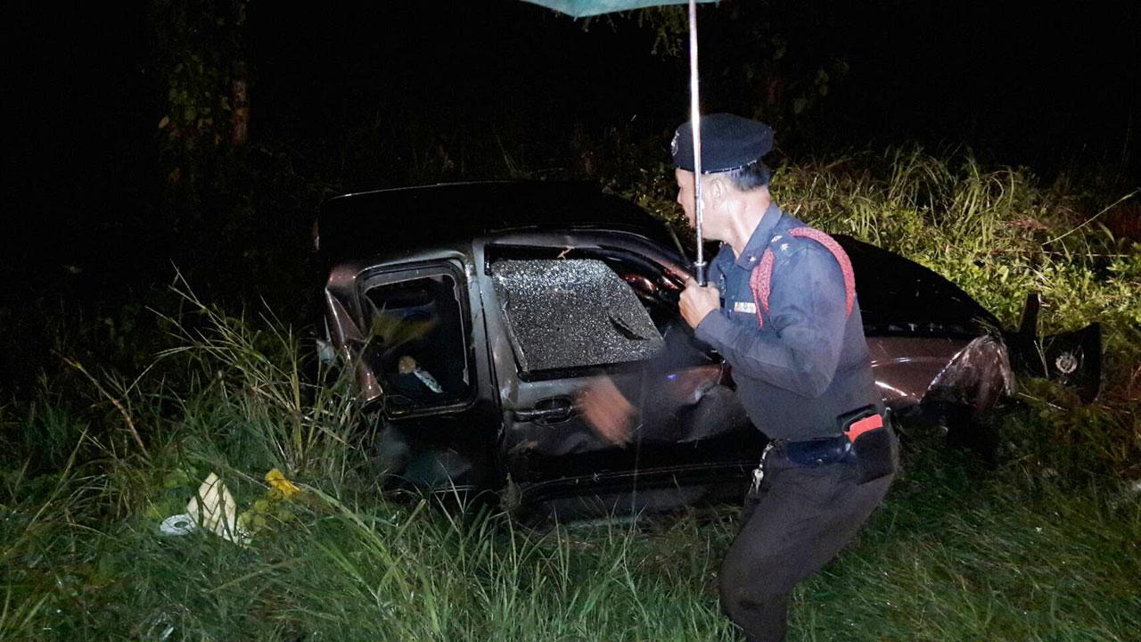 สอบสวนนายไพรวัลย์คนขับรถ กล่าวว่า ขณะขับรถมุ่งหน้าจะกลับบ้านปรากฏว่าเกิดฝนตกลงมาอย่างหนักประกอบกับถนนลื่นและมืด ซึ่งขับมาด้วยความเร็วพอสมควรสุดท้ายรถเกิดเสียหลักแม้จะพยายามบังคับรถแต่กลับพุ่งข้ามเลนไปชนกับต้นไม้อย่างแรงเป็นเหตุให้ส่วน ท้ายกับส่วนหัวรถขาด 2 ท่อน ดังกล่าว โชคดีที่ไม่ได้รับบาดเจ็บ หลังจากนั้นเจ้าหน้าที่จึงได้ประสานรถยกเพื่อนำไปเก็บไว้ที่โรงพักและจะ เรียกเจ้าของรถมาสอบสวนอีกครั้งต่อไป.