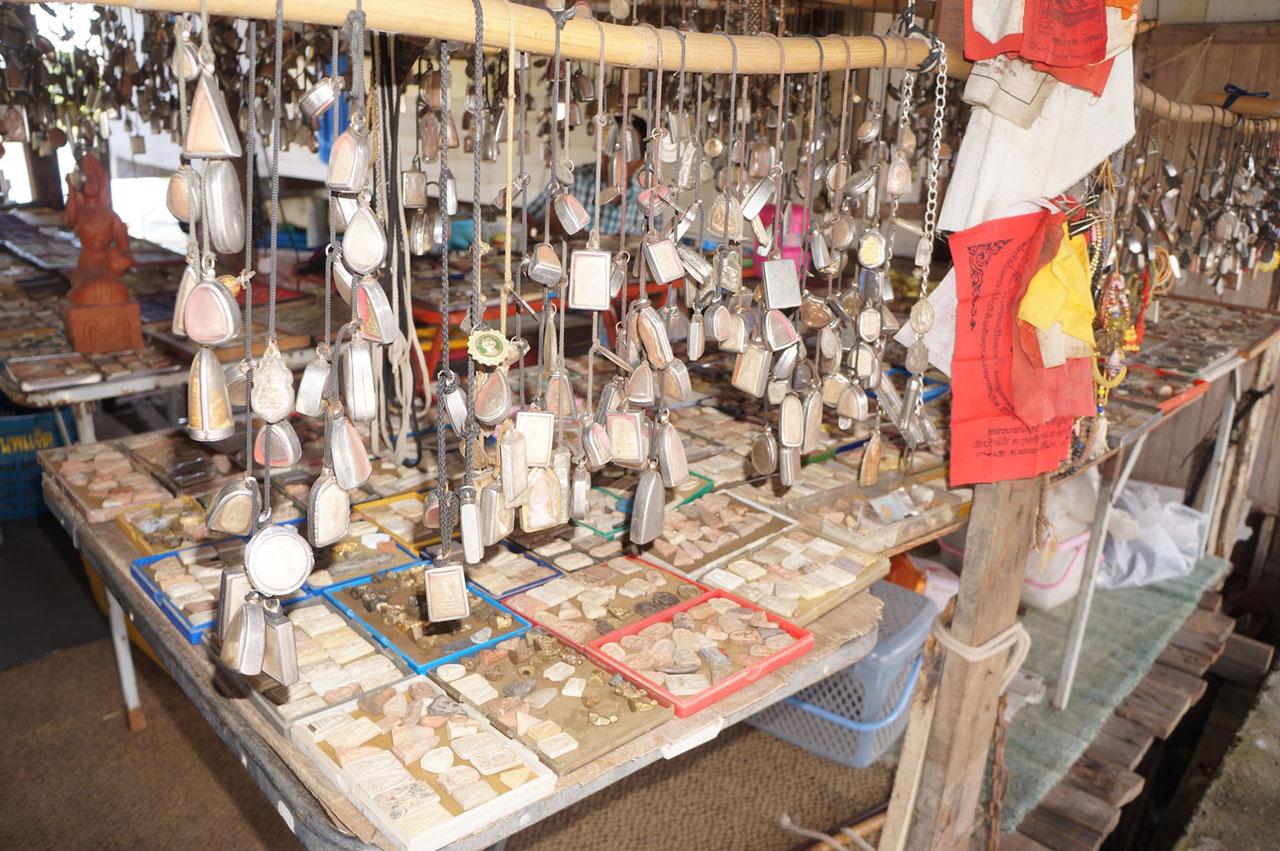 หลังจากนั้นได้เล่าถึงความเป็นมาของการแขวนพระเครื่องขายหน้าบ้าน ว่า ตนสะสมพระเครื่องและวัตถุมงคลของเกจิชื่อดังจากทั่วประเทศ มานานกว่า 20 ปี คาดว่า น่าจะมีไม่ต่ำกว่า 20,000 องค์ เมื่อมีจำนวนเพิ่มมากขึ้น ประกอบกับเป็นช่วงที่เศรษฐกิจไม่ดีรายได้ไม่พอค่าใช้จ่ายในครอบครัว จึงหาทางระบายออก ด้วยการใช้พื้นที่หน้าบ้านริม ถ.จรดวิถีถ่อง เปิดเป็นลานใช้แขวนพระเครื่องที่ตนสะสมไว้ทั้งหมด โดยลูกค้าสามารถเดินดูได้ทุกองค์อย่างสะดวกสบาย ไม่ว่าจะเป็นพระกรุ, เนื้อดิน, เนื้อชิน, เนื้อผง, เหรียญคณาจารย์ รวมทั้งเครื่องรางของขลังต่างๆ ทั้งหมด พร้อมให้เช่าบูชาในราคาถูกกว่าตามแผงพระในตัวเมืองหลายเท่า สนนราคามีตั้งแต่ 50-500 บาท เท่านั้น