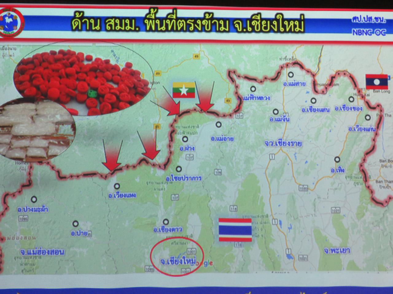 เมื่อเวลา 09.00 น.วันที่ 29 ก.ย. 59 ที่กองกำลังผาเมือง พล.ต.สมพงษ์ แจ้งจำรัส ผู้บัญชาการศูนย์ปฏิบัติการป้องกันและปราบปรามยาเสพติดชายแดนภาคเหนือ (ศป.ปส.ชน.) เป็นประธาน สรุปผลการปฏิบัติงานประจำปี 2559 ประเมินสถานการณ์ การแพร่ระบาดของยาเสพติดบริเวณแนวชายแดน และพื้นที่อำเภอตอนใน ว่า ในห้วงตุลาคม 2558-กันยายน 2559 ศป.ปส.ชน.ตรวจสอบข่าวสารพบว่า กลุ่มขบวนการมีความพยายามลักลอบลำเลียงยาบ้าเข้าเขตไทย จำนวน 51,910,000 เม็ด สามารถจับกุมได้ในพื้นที่รับผิดชอบ ของ ศป.ปส.ชน. (21 อำเภอ) จำนวน 12,750,861 เม็ด คิดเป็นร้อยละ 24.56 จากการประเมินสถานการณ์คาดว่ามีการลักลอบลำเลียงยาเสพติดเข้ามาในเขตไทย และหลบหนีการจับกุมของเจ้าหน้าที่อีกเป็นจำนวนมาก