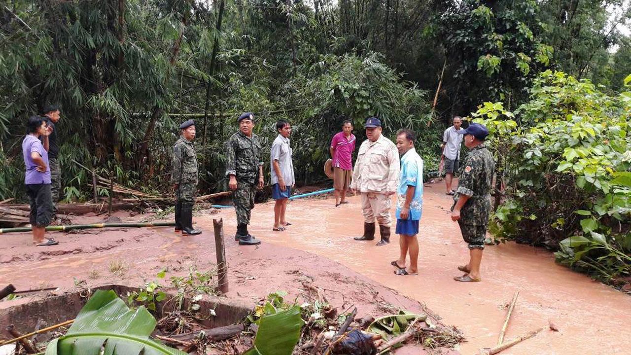 นายศิริชัย อิทธิวงศ์ศุภกิจ นายอำเภอแม่จริม จ.น่าน พร้อมด้วย นายประทุน สุยาว ปลัดอำเภองานป้องกัน เจ้าหน้าที่ทหาร และกำลัง อส.ในพื้นที่แม่จริม ให้ความช่วยเหลือชาวบ้านที่ถูกน้ำป่าและดินสไลด์ หลังจากฝนตกหนัก ส่งผลให้เกิดน้ำป่าไหลหลากเข้าบ้านของราษฎรบ้านน้ำแนะ หมู่ 3 ต.น้ำพาง จำนวน 5 หลังคาเรือน มีทรัพย์สินเสียหาย เป็นเครื่องนอน เครื่องครัว เครื่องใช้ไฟฟ้าในบ้าน ดินโคลนถมบ้าน สัตว์เลี้ยงอย่างสุกร ไก่ บ่อปลา และนาข้าว เสียหาย อยู่ระหว่างการสำรวจความเสียหายของ อบต.น้ำพาง.