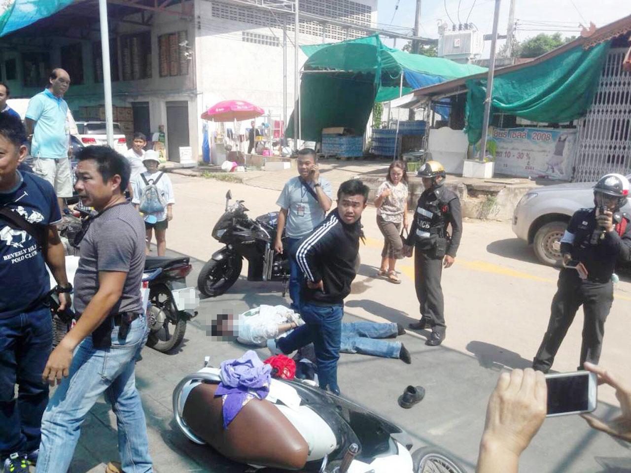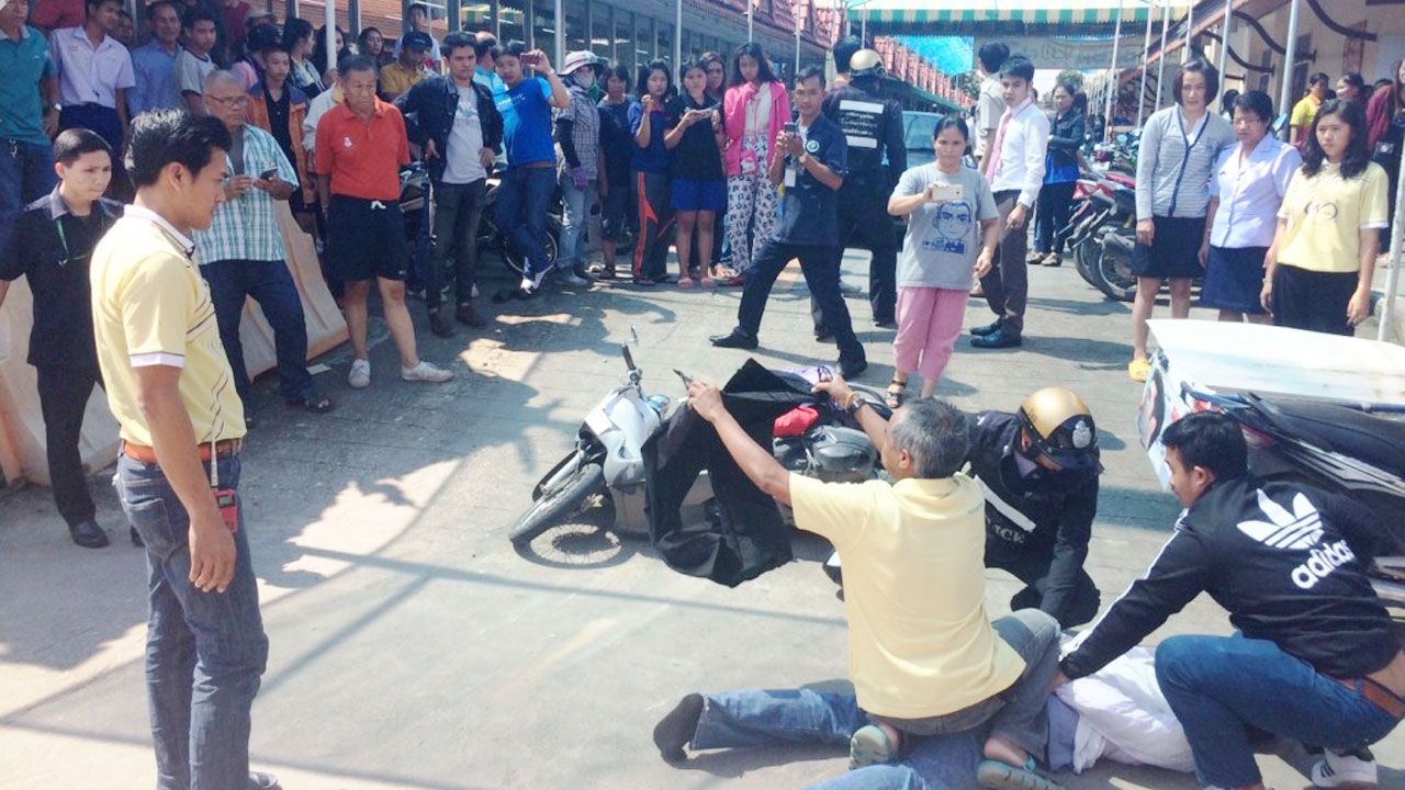 ทั้งนี้ ผู้เห็นเหตุการณ์ เล่าด้วยว่าเห็นผู้ก่อเหตุคนดังกล่าวได้มาจอดรถไว้ที่ข้างห้างนราไฮเปอร์มาร์ท และเดินไปโดยไม่ถอดหมวกกันน็อก แต่ไม่ได้เอะใจอะไร จากนั้น ได้เห็นชายคนเดิมถือถุงสีแดง วิ่งกลับมาที่รถและมีพลเมืองดีวิ่งตามมา ตอนแรกเข้าใจว่าเป็นเหตุทะเลาะวิวาท