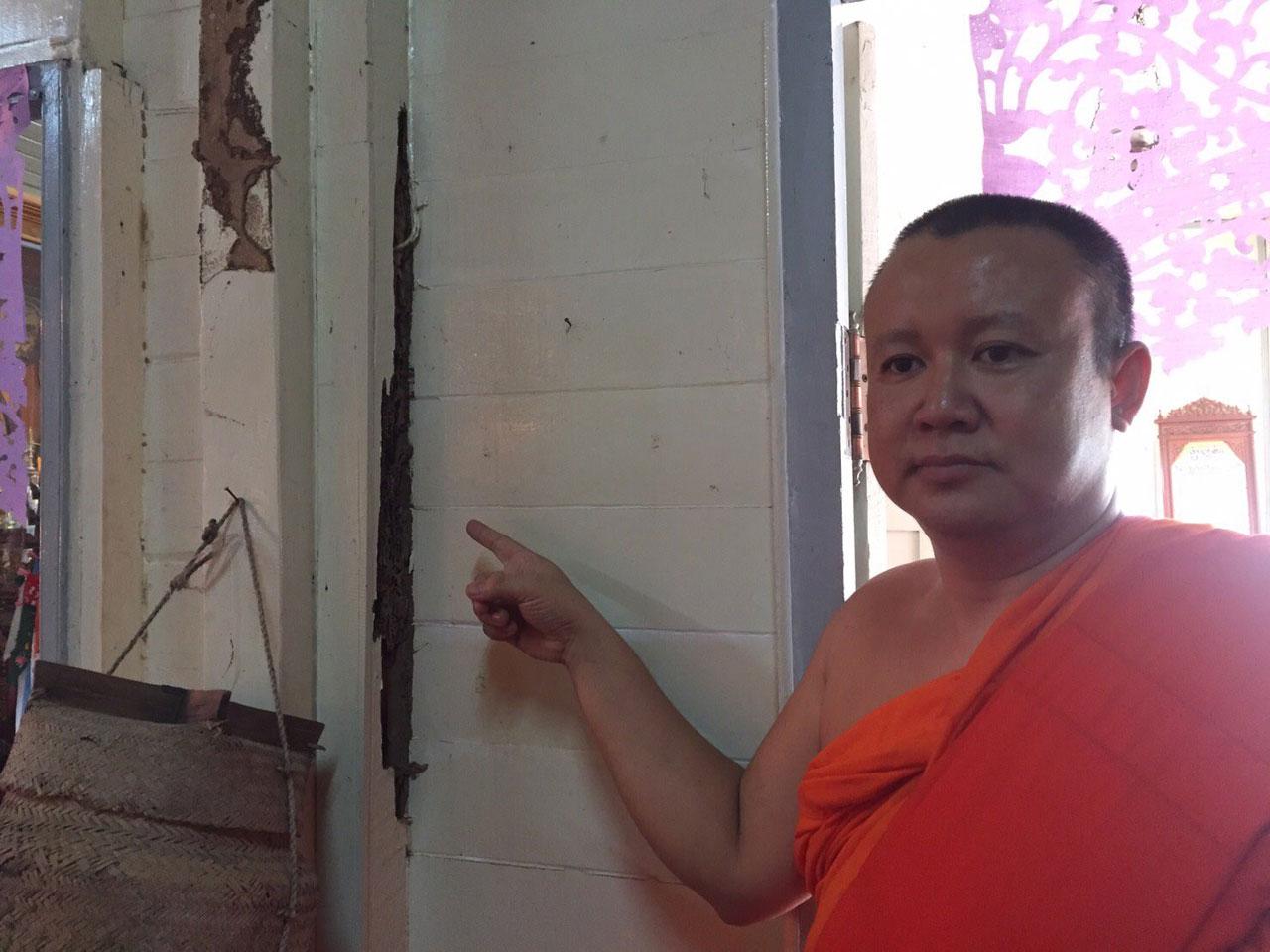 ซึ่งปลวกที่กัดกินเนื้อไม้นั้น ไม่สามารถมองเห็นด้วยตาเปล่าได้เนื่องด้วยปลวกจะกัดกินข้างในของเนื้อไม้ จนสามารถมองเห็นปลวกและทราบว่า ปลวกกินไม้ก็ต่อเมื่อปลวกได้กัดเนื้อไม้จนทะลุออกมา โดยปลวกได้เริ่มกัดกินเนื้อไม้ตั้งแต่ก่อนที่จะบูรณะอาคารหลังดังกล่าว แต่หลังจากบูรณะเสร็จสิ้น เมื่อปี 2555 ปลวกก็ยังกัดกินเนื้อไม้อยู่เรื่อยมา ทางวัดได้ใช้ทุกวิถีทาง ทั้งสารเคมี สมุนไพร รวมไปถึงการทำความสะอาดต่างๆ แต่ก็ไม่เป็นผล ปลวกก็ยังกัดกินเนื้อไม้ตลอดระยะเวลาหลังจากบูรณะซ่อมแซม