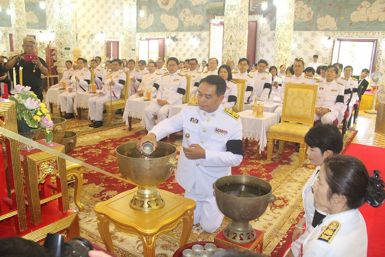 กระทั่งเวลา 17.00 น. ผู้ว่าราชการจังหวัดแพร่ ได้จุดธูปเทียนบูชาพระรัตนตรัยและจุดเครื่องทองน้อยหน้าโต๊ะหมู่บูชาประดิษฐานพระบรมฉายาลักษณ์/พระบรมสาทิสลักษณ์ พระบาทสมเด็จพระเจ้าอยู่ในพระบรมโกศ พระสงฆ์ทรงสมณศักดิ์สวดพระอภิธรรม ผู้ว่าราชการ จังหวัดแพร่ ทอดผ้าไตรบังสุกุล พระสงฆ์ทรงสมณศักดิ์พิจารณาผ้าบังสุกุล เจริญจิตภาวนา เพื่อเป็นพระราชกุศลพระบาทสมเด็จพระเจ้าอยู่หัวในพระบรมโกศ พระสงฆ์อนุโมทนา