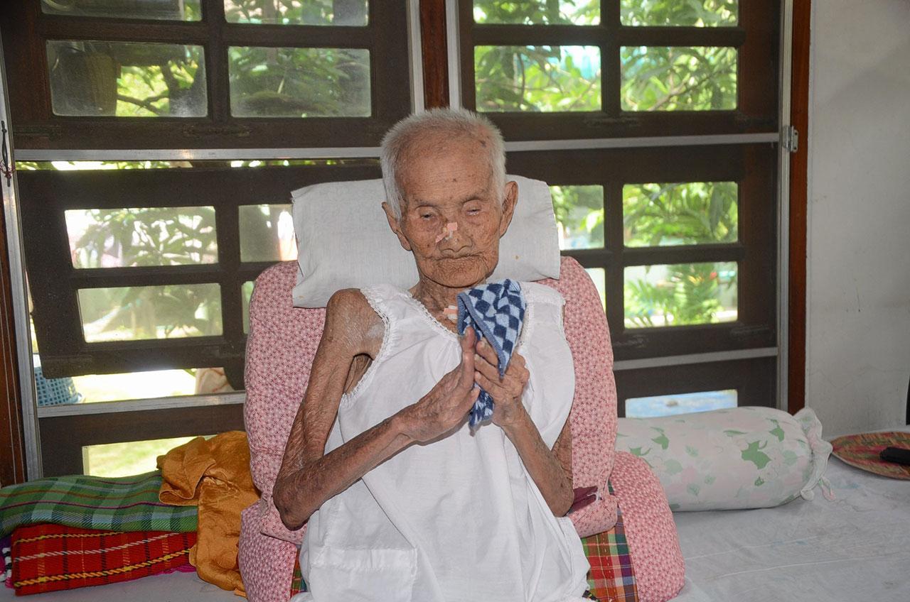 ภาพซึ้งแม่เฒ่าถวายดอกบัว