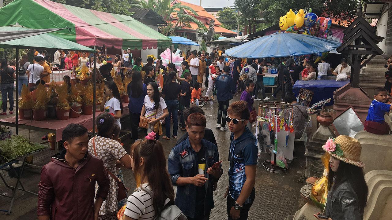 ขณะที่ วัดป่าเป้า ถ.มณีนพรัตน์ อ.เมืองเชียงใหม่ มีแรงงานชาวไทใหญ่ที่มาขายแรงงานในตัวเมืองเชียงใหม่ พากันออกจากแคมป์ที่พักคนงานมาทำบุญในวันออกพรรษา และถวายสังฆทาน พร้อมถวายบังคม พระบาทสมเด็จพระเจ้าอยู่หัว รัชกาลที่ 9 โดยพี่น้องชาวไทใหญ่ที่เป็นชนกลุ่มน้อยซึ่งมีชายแดนติดประเทศไทย และเข้ามารับจ้างทำงานในเชียงใหม่จำนวนหลายหมื่นคน สำนึกในพระมหากรุณาธิคุณต่อพระองค์ ที่ได้เข้ามาทำงานในผืนแผ่นดินไทย และส่งเงินกลับไปเลี้ยงครอบครัวที่ประเทศเมียนมา จึงพร้อมใจกันสวมเสื้อสีขาวและดำเพื่อไว้ทุกข์ และมาร่วมกันทำบุญในวันนี้.