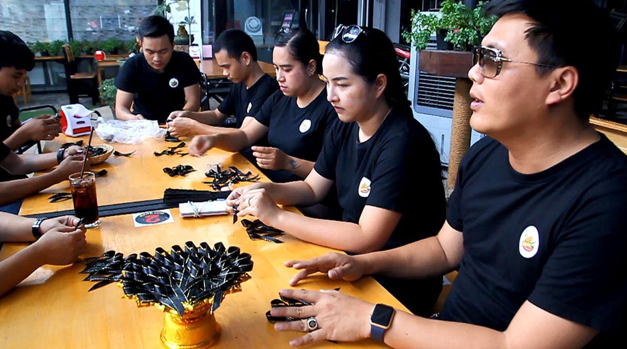 ร้านส้มตำย่านนิมมานฯ เชียงใหม่ ทำข้าวกล่อง-น้ำดื่ม พร้อมริบบิ้นสีดำ มอบแก่จิตอาสา-ประชาชนที่มาร่วมลงนามแสดงความอาลัย 'ในหลวง รัชกาลที่ 9' ที่ศาลากลางจังหวัด ...