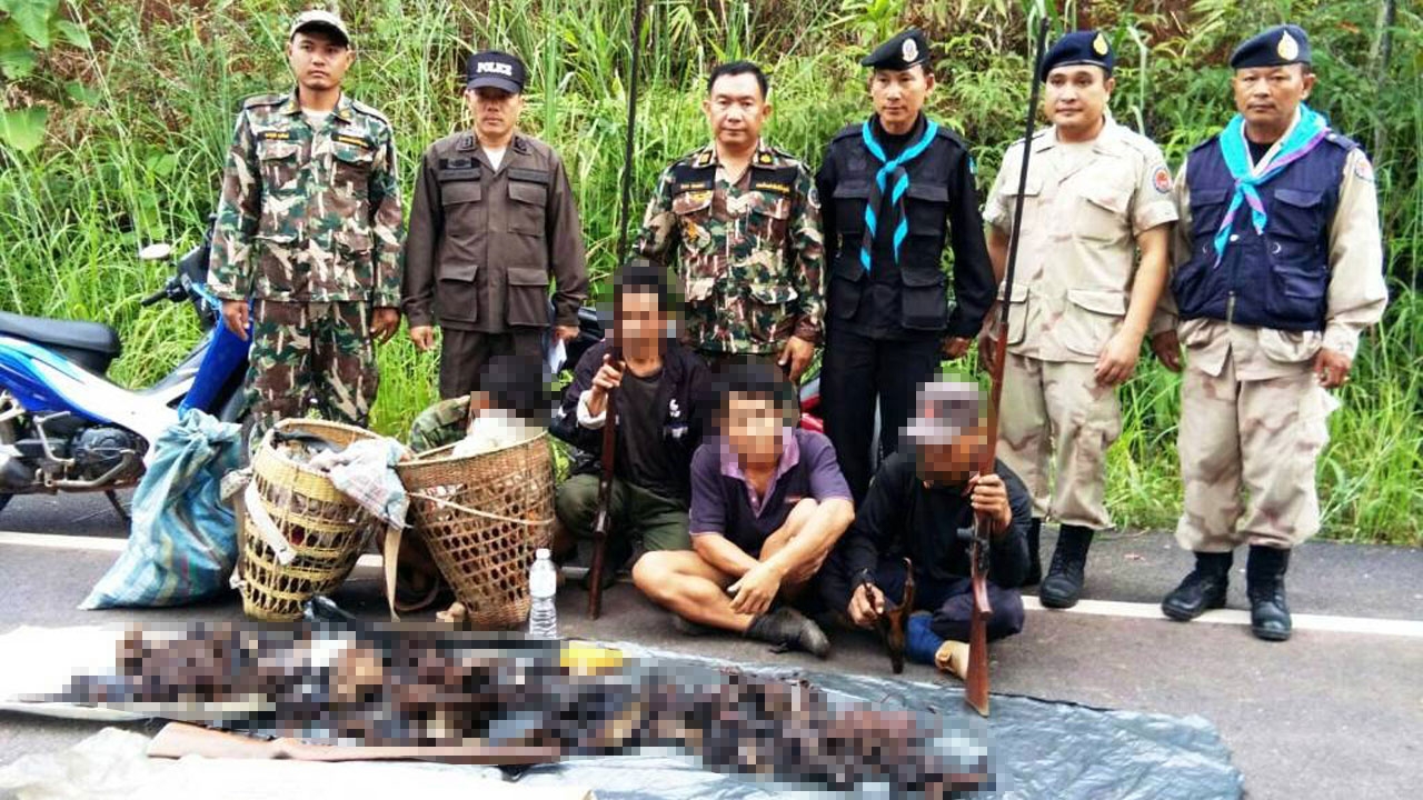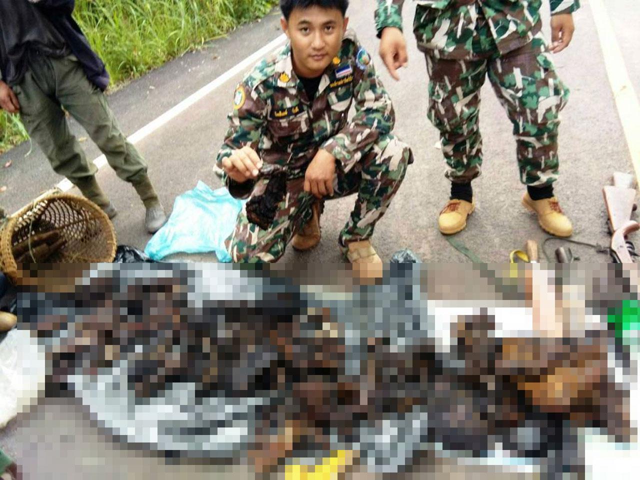 เจ้าหน้าที่ตำรวจ ฝ่ายปกครอง ทหารพรานที่ จ.น่าน จับกุมแก๊งพรานป่าลักลอบล่าสัตว์ในเขตห้ามล่าสัตว์ป่าภูฟ้า ผู้ต้องหา 4 คน ยึดซากสัตว์ป่าสงวนและสัตว์ป่าคุ้มครอง ทั้งเก้ง หมูหริ่ง กระจงกว่า 100 ชิ้น...