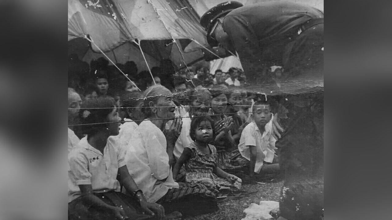 นายสมสวัสดิ์ เผยว่า ในภาพดังกล่าวเป็นยายของตนเอง คือ นางเจ้าหม่อนชั่ง จิตตางกูร ซึ่งเสียชีวิตไปแล้ว ซึ่งกำลังกราบทูลเรื่องราวที่พระองค์ท่านได้ตรัสถาม ขณะที่พระองค์กำลังตรวจเยี่ยมราษฎรในพื้นที่ จ.เชียงราย ซึ่งในขณะนั้นเกิดน้ำท่วมใหญ่ โดยเฉพาะ อ.เชียงของ ที่อยู่ติดแม่น้ำโขง ซึ่งระดับน้ำท่วมสูงจากพื้นราบด้านบนฝั่งสูงขึ้นกว่า 5-6 เมตร ราษฎรที่อาศัยพื้นราบต้องย้ายของขึ้นอาศัยบนที่สูง ซึ่งถือว่าเป็นเหตุการณ์หนักที่สุดที่เคยเกิดขึ้น ประกอบกับขณะนั้นประเทศเพื่อนบ้าน คือ สปป.ลาว ก็กำลังสู้รบภายใน กำลังเปลี่ยนแปลงการปกครอง จึงต้องมีกำลัง ตชด. ไว้คอยป้องกันภัยให้กับราษฎรในพื้นที่ การเดินทางมาในพื้นที่ของพระองค์ จึงถือว่าเป็นขวัญและกำลังใจกับเจ้าหน้าที่ และราษฎรของพระองค์เป็นอย่างยิ่ง