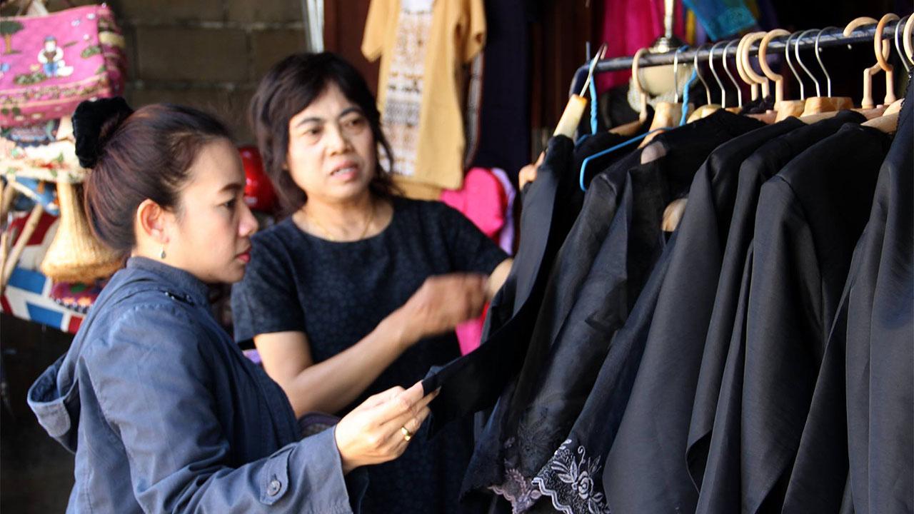 วิสาหกิจชุมชนกลุ่มเสื้อไตบ้านโป่ง จ.แม่ฮ่องสอน เร่งผลิตเสื้อผ้าชุดดำแบบล้านนา หลังออร์เดอร์พุ่ง ส่งผลให้วัตถุดิบตัดเย็บขาดตลาด เผยต้องรอผ้าสีดำอีก 1 อาทิตย์