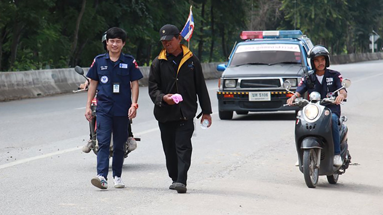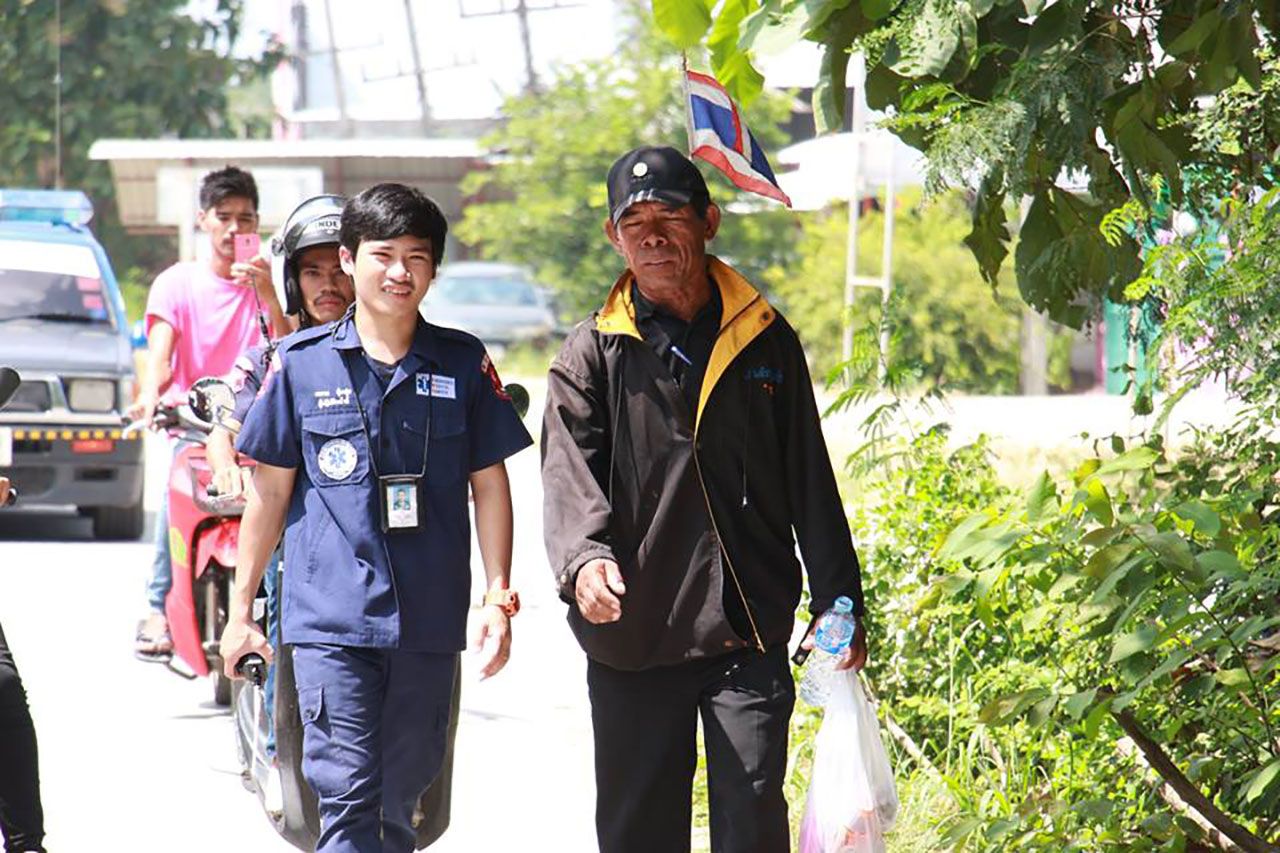 เมื่อเวลา 12.00 น. วันที่ 24 ต.ค. 59 ที่บริเวณริมถนนสายพหลโยธิน นครสวรรค์-กำแพงเพชร ตำบลนครสวรรค์ อำเภอเมือง จังหวัดนครสวรรค์ พบชายสูงวัยแต่งกายชุดสีดำ สะพายกระเป๋าเป้ด้านบนมีธงชาติไทย และพระบรมฉายาลักษณ์พระบาทสมเด็จพระเจ้าอยู่หัว รัชกาลที่ ๙ ส่วนด้านล่างมีข้อความว่า เดิน กำแพงเพชร-กรุงเทพฯ