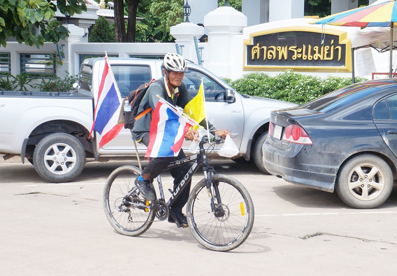 'ลุงทองใบ' วัย 60 ปี ชาวกงไกรลาศ ปั่นจักรยานจากสุโขทัยมุ่งหน้าพระบรมมหาราชวัง เพื่อถวายสักการะพระบรมศพ พระบาทสมเด็จพระปรมินทรมหาภูมิพลอดุลยเดช ด้วยระยะทาง 430 กม.