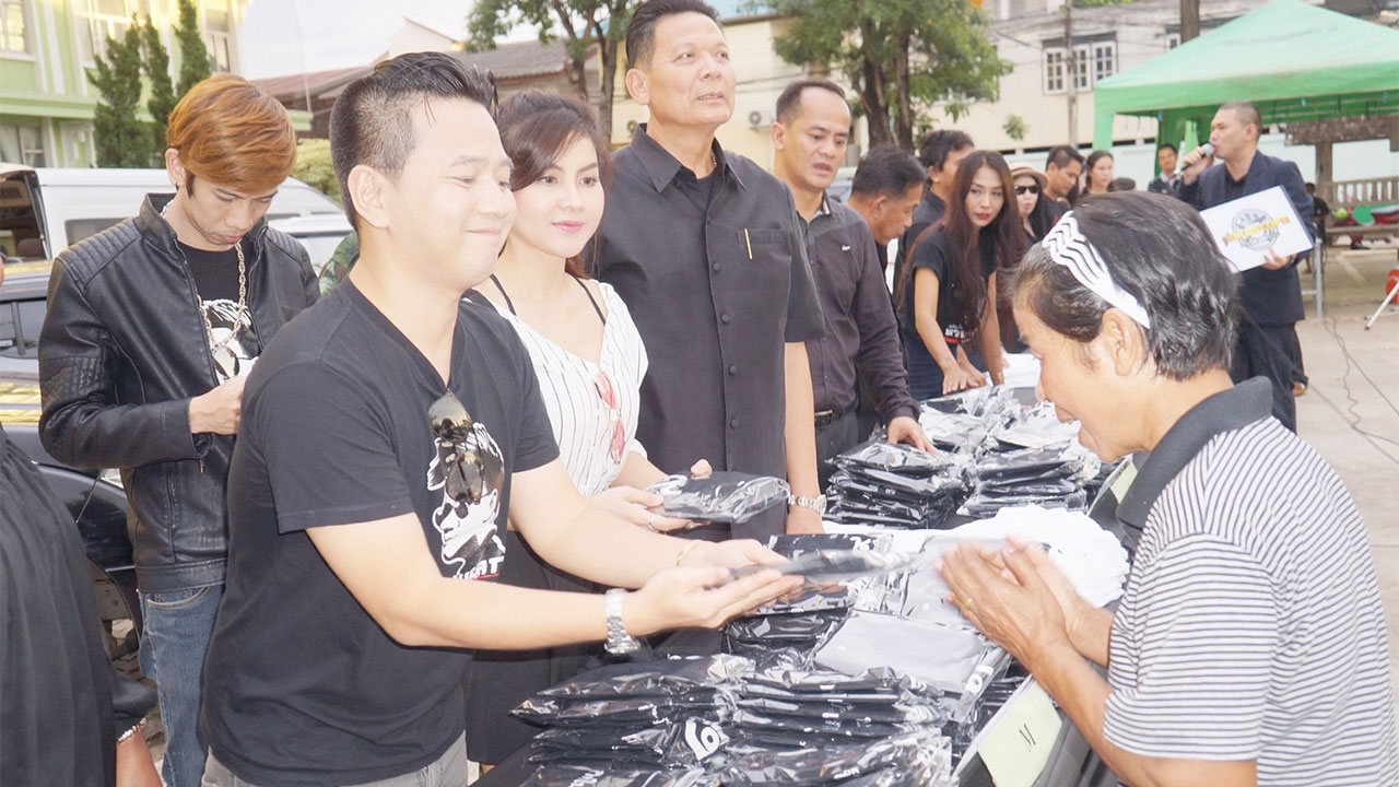 "จากนั้นจึงชักชวนพรรคพวกศิลปินตลก ช่วยกันจัดหาเสื้อยืดสีดำพร้อมสกรีนมาแจกให้ โดยขออนุญาตใช้สถานที่ของเทศบาลเมืองสุโขทัยธานี เป็นจุดทำการแจก" เอ เชิญยิ้ม กล่าว