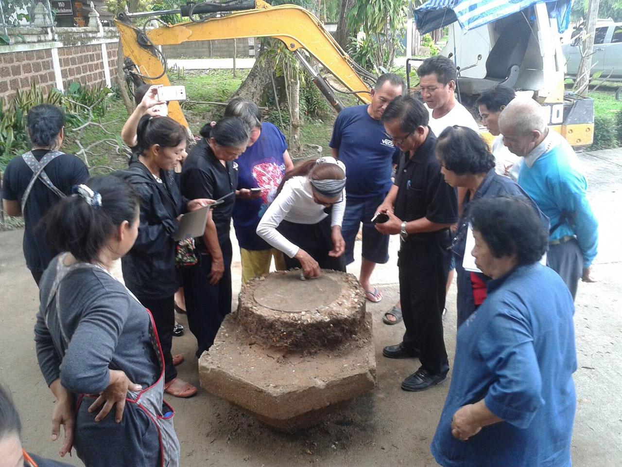 เมื่อชาวบ้านรู้ข่าวการขุดพบแท่นจารึก ต่างแห่กันไปดูด้วยความปลื้มปีติและภาคภูมิใจ ที่ล้นเกล้าทั้งสองพระองค์ เคยเสด็จฯ ผ่านมาแวะเยี่ยมชาวบ้านแห่งนี้