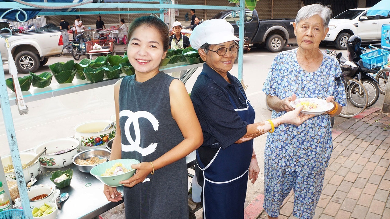 "ยายแป๋ว" แม่ค้าคนดังตลาดเทศบาลสุโขทัย โชว์ฝีมือทำขนมจีนซาวน้ำ อาหารตำรับอร่อยแต่หาคนทำยากแล้วในปัจจุบัน แจกฟรี 399 กระทง บอกอยากทำดีถวายในหลวงรัชกาลที่ 9 และทำบุญถวายเป็นพระราชกุศลแด่พระองค์ท่านด้วย...