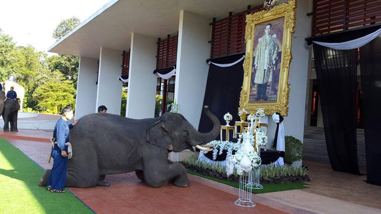 เมื่อเวลา 10.00 น. วันที่ 31 ต.ค.59 ที่บริเวณลานหน้าอาคารกัลยาณิวัฒนา สถาบันคชบาลแห่งชาติศูนย์อนุรักษ์ช้างไทย ต.เวียงตาล อ.ห้างฉัตร จ.ลำปาง ได้จัดพิธีน้อมรำลึกแสดงความอาลัยในพระมหากรุณาธิคุณของพระบาทสมเด็จพระปรมินทรมหาภูมิพลอดุลยเดช โดยนำช้างมาร่วม 30 เชือก ในจำนวนนี้มีช้างพลายปฐมสมภพ อายุ 9 ปี ซึ่งเป็นช้างพลาย ที่พระบาทสมเด็จพระปรมินทรมหาภูมิพลอดุลยเดชพระราชทานชื่อให้ เพื่อความเป็นสิริมงคลต่อสถาบันคชบาลแห่งชาติ เป็นช้างนักแสดง แสนรู้ และฉลาดมากของศูนย์อนุรักษ์ช้างไทย
