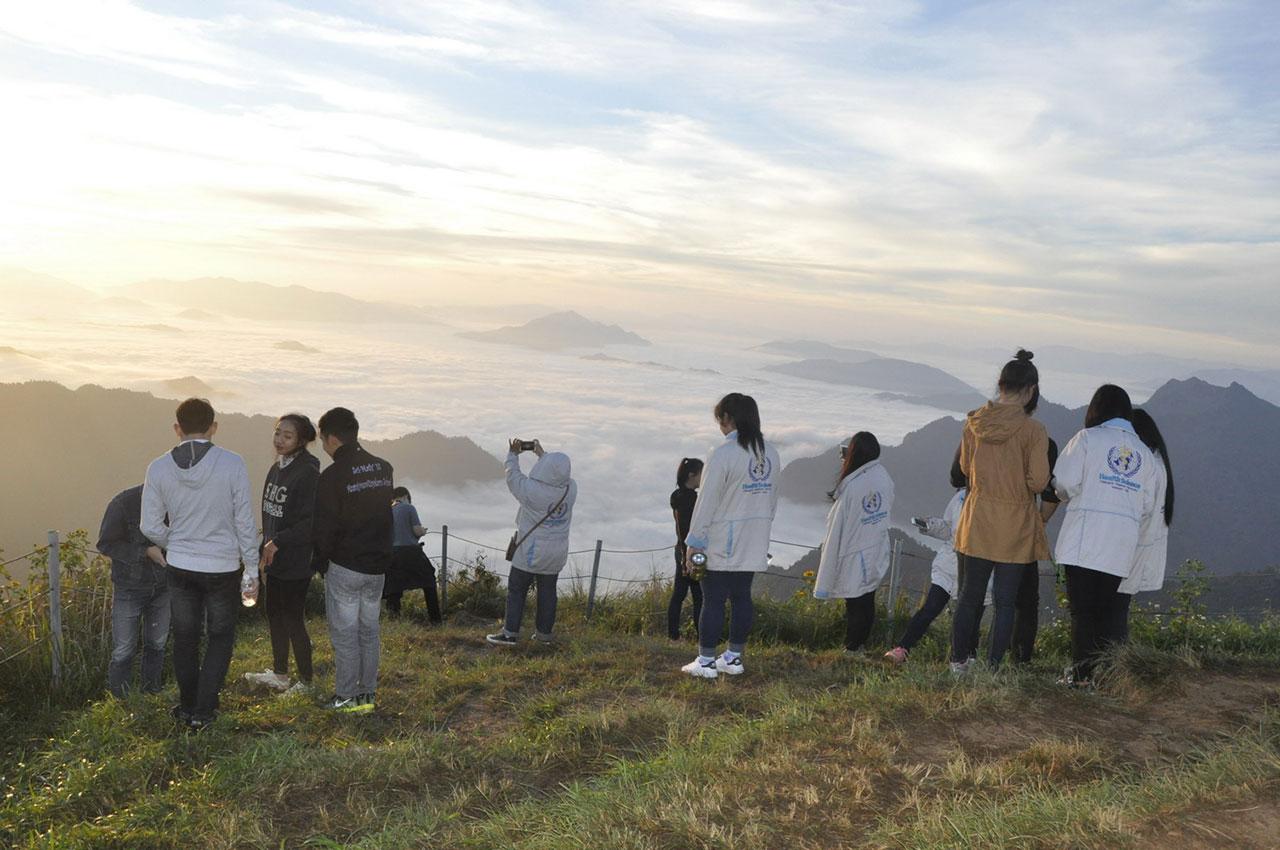 วันที่ 6 พ.ย. ที่บริเวณยอดภูชี้ฟ้า ต.ตับเต่า อ.เทิง จ.เชียงราย อุณหภูมิลดต่ำเหลือ 10 องศาเซลเซียส นักท่องเที่ยวจากทั่วสารทิศต่างสวมเสื้อกันหนาว แห่ขึ้นโต้ลมหนาว ชมทะเลหมอก ถ่ายพระอาทิตย์ขึ้นในช่วงวันหยุดเสาร์-อาทิตย์กันอย่างคึกคัก ต้อนรับการเข้าสู่ฤดูหนาวเต็มตัว