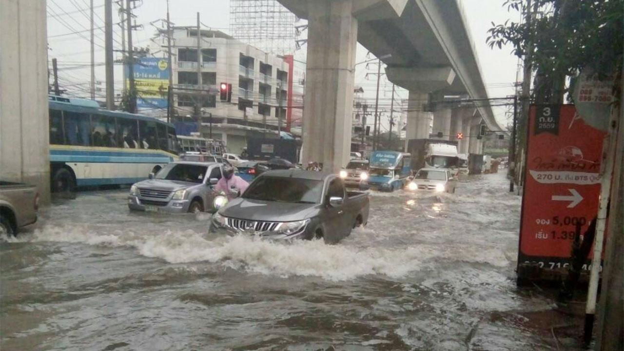 เมื่อเวลา 04.00 น. วันที่ 8 พ.ย. 59 เกิดฝนตกหนักต่อเนื่องยาวนานหลายชั่วโมง ในพื้นที่ อ.เมืองสมุทรปราการ ส่งผลทำให้เกิดน้ำเอ่อท่วมขังบนถนนสายสุขุมวิทสายเก่า ตั้งแต่หน้า สภ.สำโรงเหนือ ยาวไปถึงหน้าช้างสามเศียร โดยเฉพาะช่วงแยกปู่เจ้าสมิงพราย ซึ่งเป็นพื้นที่ต่ำ พบว่าน้ำท่วมสูงกว่า 40 ซม. ทำให้รถเล็กสัญจรลำบาก เกิดการชะลอตัว ส่งผลให้การจราจรติดขัดยาวหลายกิโลเมตร