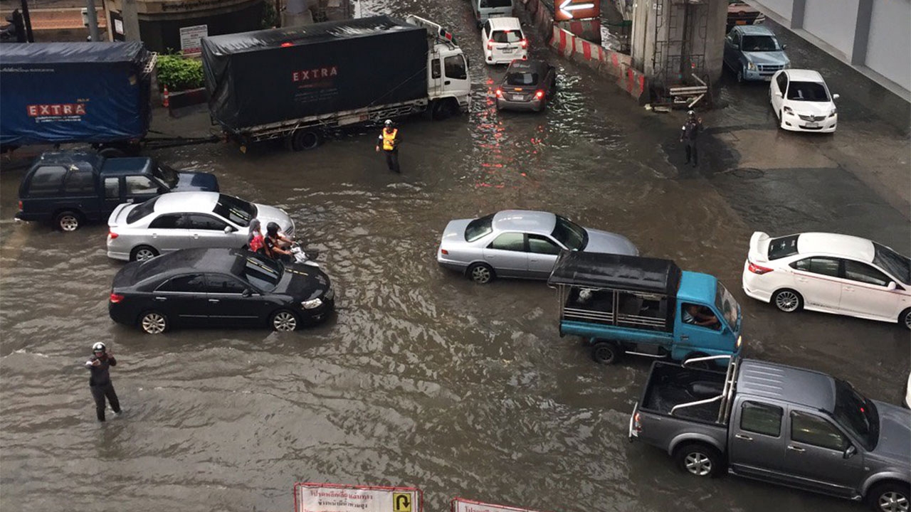 จ.สมุทรปราการ ฝนตกตั้งแต่ตี 4 น้ำสะสมเอ่อท่วมถนนหลายเส้นทาง ทำการจราจรช่วงเร่งด่วนติดขัดหนัก ตร.จร. เร่งอำนวยความสะดวก จนท.อีกส่วนเร่งระบายน้ำ ส่วน ร.ร.อัสสัมชัญสมุทรปราการ ปิดเรียน 1 วัน