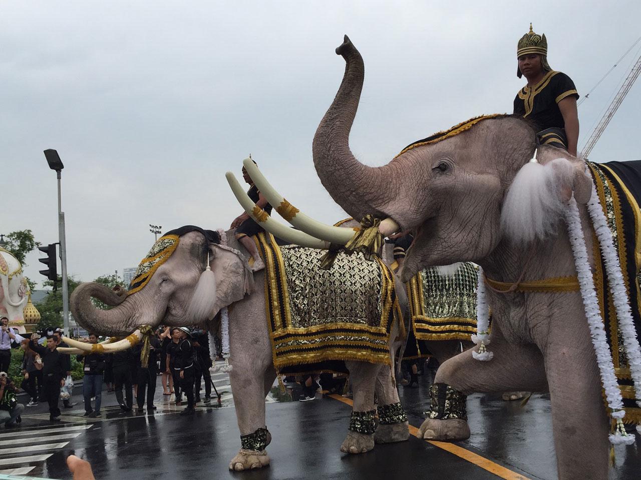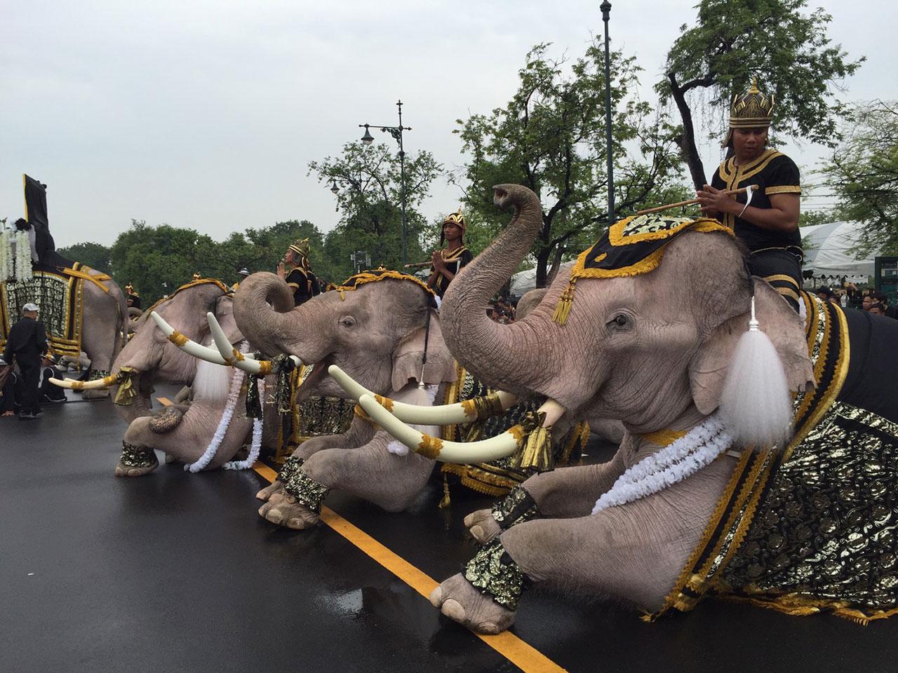 ขบวนคชสาร 11 เชือก แต่งเต็มยศ จากมูลนิธิพระคชบาล จ.พระนครศรีอยุธยา มาแสดงความอาลัย พระบรมศพ เป็นที่ตื่นตา ...