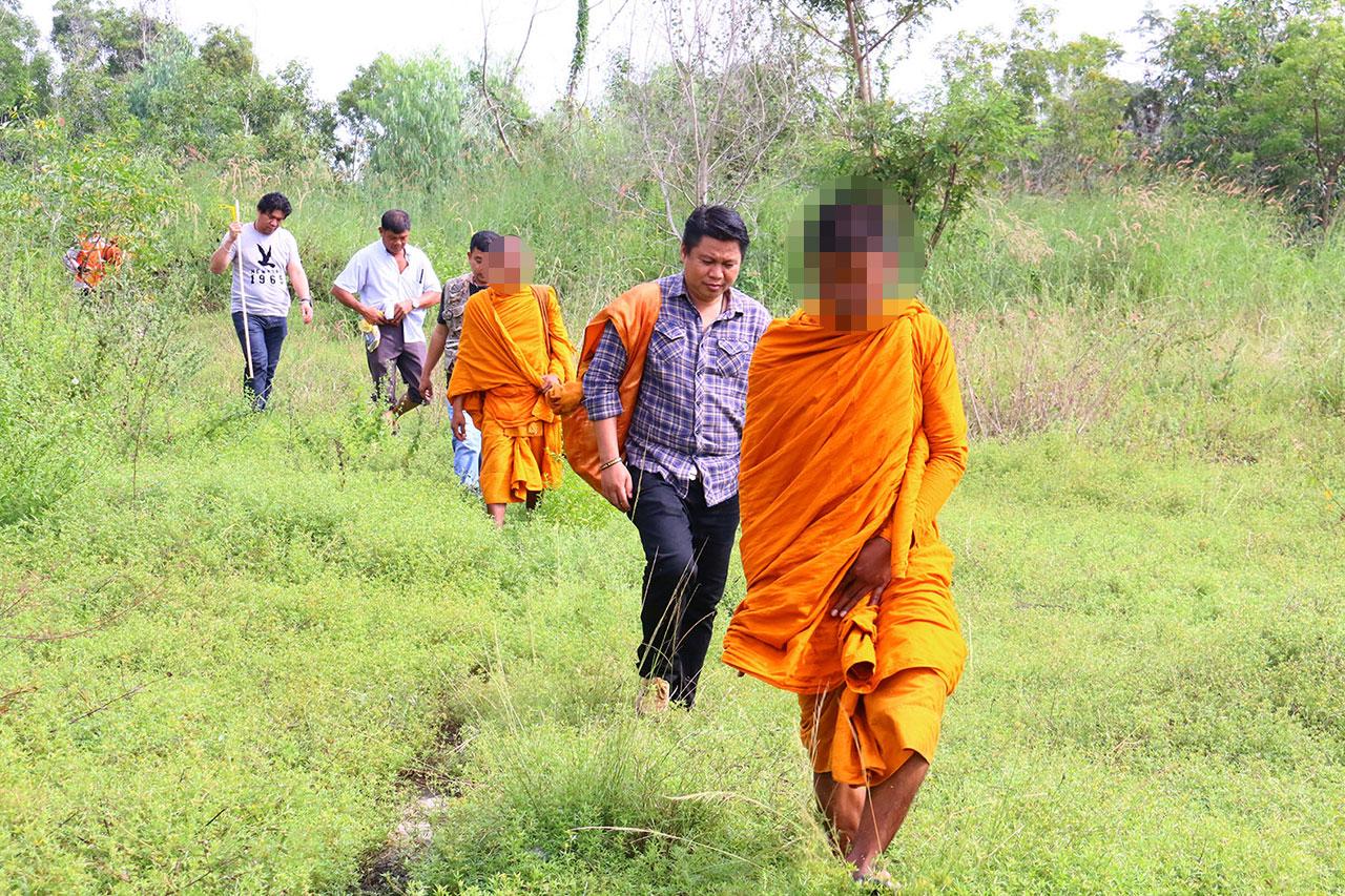 นายสุพจน์ เปิดเผยว่า สืบเนื่องจาก ก่อนหน้านี้ ได้รับการร้องเรียนจากลูกบ้านว่า มีพระสงฆ์จำนวน 5 รูป คล้ายพระสงฆ์ไทย เนื่องจากสวดให้พรญาติโยมบทสัพพี เป็นภาษาไทยอย่างชัดเจน ออกเดินเรี่ยไรขอเงินจากชาวบ้าน มีพฤติกรรมไม่เหมาะสม ไม่เป็นที่น่าเคารพนับถือ และมักหายตัวลึกลับเข้าไปป่ายูคาลิปตัส หลังตรวจสอบแน่ชัดว่า มีพระสงฆ์กลุ่มนี้อยู่จริง จึงได้ประสานไปยัง ผกก.สภ.นาจอมเทียน ในการขอกำลังเข้าร่วมตรวจสอบ แต่สามารถจับกุมได้เพียง 3 รูป อีก 2 รูปไหวตัวหนีไปได้