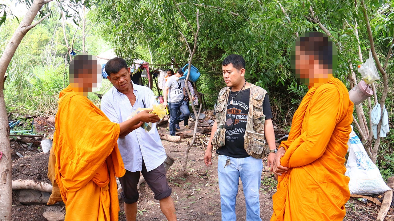 ผู้ใหญ่บ้านนาจอมเทียน สุดทน! แจ้ง ตร. บุกจับพระกัมพูชา กลางป่ายูคาลิปตัส หลังพบเดินเรี่ยไรเงินชาวบ้าน โดยสวดให้พรญาติโยมบทสัพพีเป็นภาษาไทย ทำให้ไม่มีใครสงสัย ได้เงินมา ก็ส่งให้ครอบครัวที่กัมพูชา