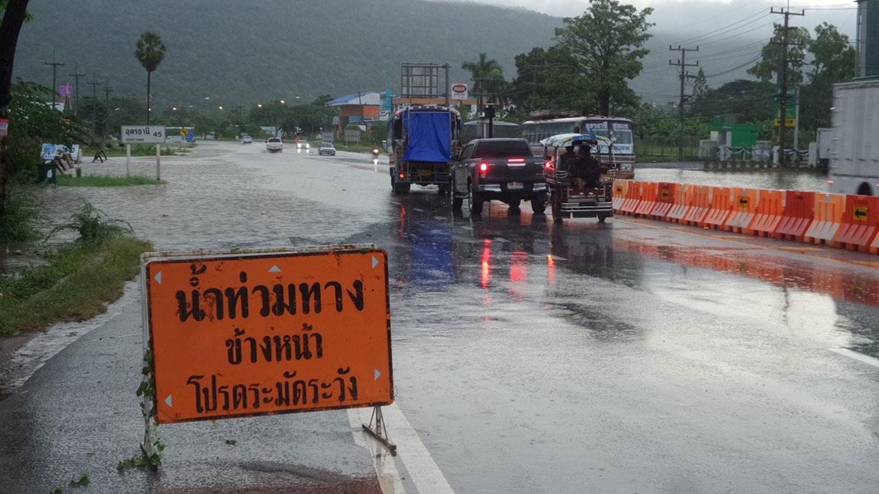 เมื่อวันที่ 9 พ.ย. 59 ผู้สื่อข่าวรายงานว่า เกิดฝนตกหนักในพื้นที่ จ.หนองบัวลำภู ตั้งแต่ 03.45 น. จนถึง 07.00 น. ส่งผลให้เกิดน้ำท่วมถนนสำคัญของจังหวัดหลายจุด ที่ทางหลวงแผ่นดินสาย 210 หนองบัวลำภู-นากลาง บริเวณสถานีไฟฟ้าแรงสูง บ้านดอนน้อย ต.หนองภัยศูนย์ อ.เมืองหนองบัวลำภู พบมีน้ำท่วมถนนทั้ง 2 ฝั่งสูงประมาณ 50 ซม. เป็นระยะทางกว่า 500 ม. รถเล็กไม่สามารถผ่านได้ รถปิกอัพบางคันลุยน้ำก็ผ่านได้ด้วยความลำบาก ผู้ขับขี่จึงต้องใช้เส้นทางเลี่ยงอื่นไปก่อน ขณะที่บริเวณหน้าทางเข้าศูนย์ราชการจังหวัด น้ำท่วมผิวจราจรฝั่งทางเข้าศูนย์ราชการระดับน้ำ 30-50 ซม. เป็นระยะทางยาวกว่า 300 ม. รถวิ่งได้ช่องทางเดียว ข้าราชการต้องไปใช้ประตูทางเข้าด้านหลังติดถนนสายรอบเมืองแทน และอีกจุด บริเวณป้อมตำรวจทางหลวง และหน้า ธ.ก.ส.หนองบัวลำภู น้ำท่วมประมาณ 30 ซม. ระยะทางกว่า 500 ม. รถต้องวิ่งช่องทางกลางทั้ง 2 ฝั่ง