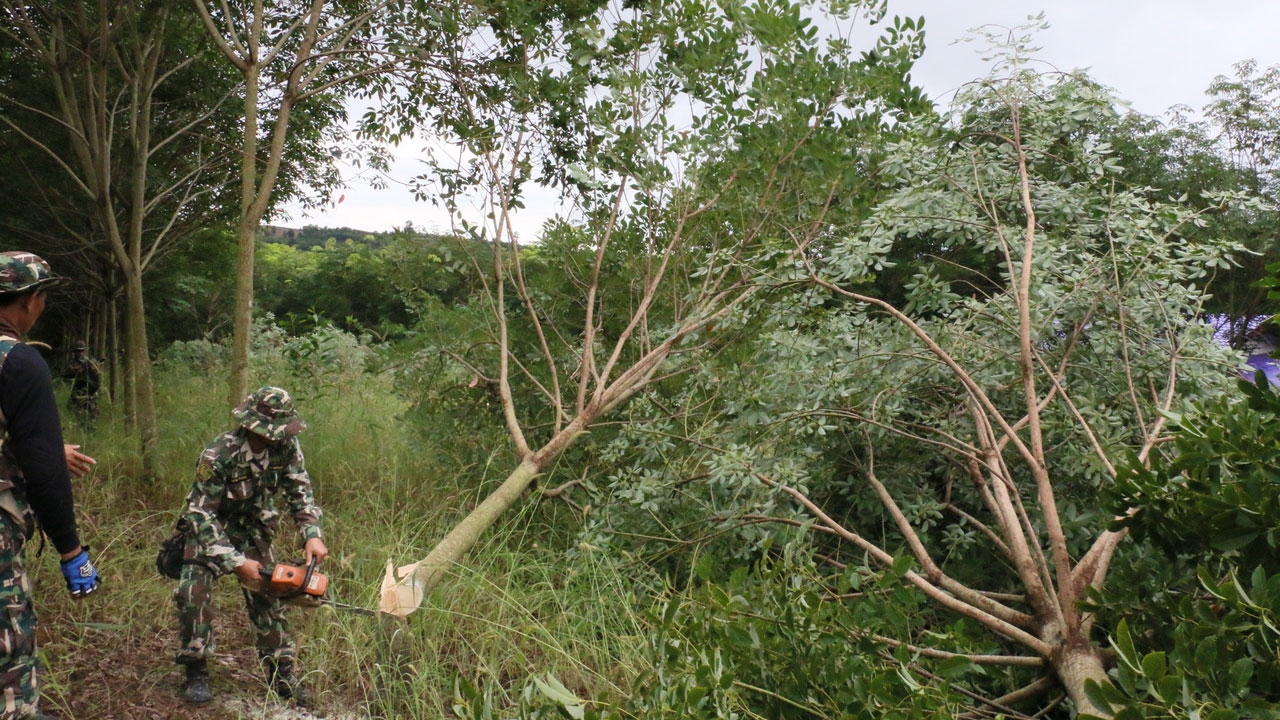 มทบ.28 สนธิกำลัง ก.ทรัพย์ฯ ป่าไม้ ตร. และทหาร เข้าตัดต้นยางพารากว่า 800 ไร่ ที่ถูกกลุ่มนายทุนเข้าทำการบุกรุกปลูกสวนยางในเขตป่าสงวน...