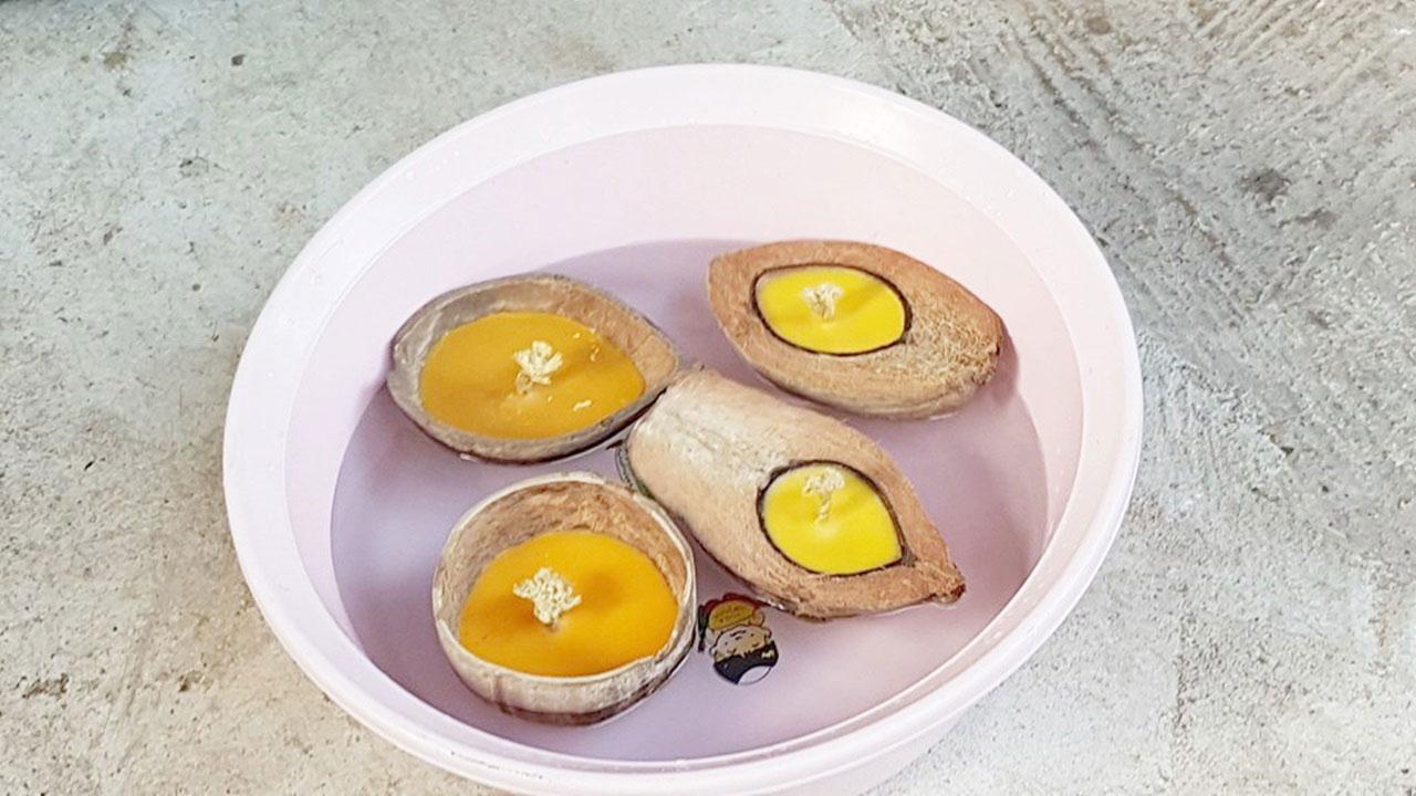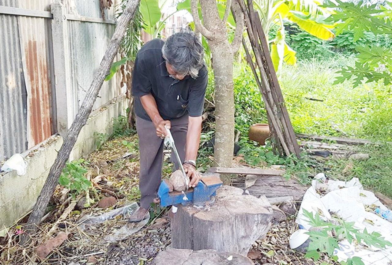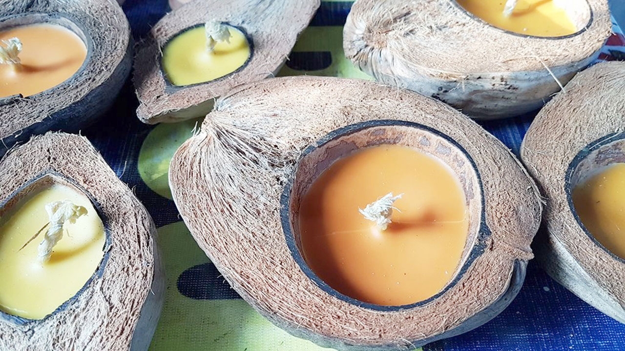 สามีภรรยาชาวสุโขทัย ผ่าลูกมะพร้าวแห้งหยอดเทียน ทำเป็น “กระทงพอเพียง” ขายราคาไม่แพง บอก ยึดหลักปรัชญาเศรษฐกิจพอเพียงตามคำพ่อสอน