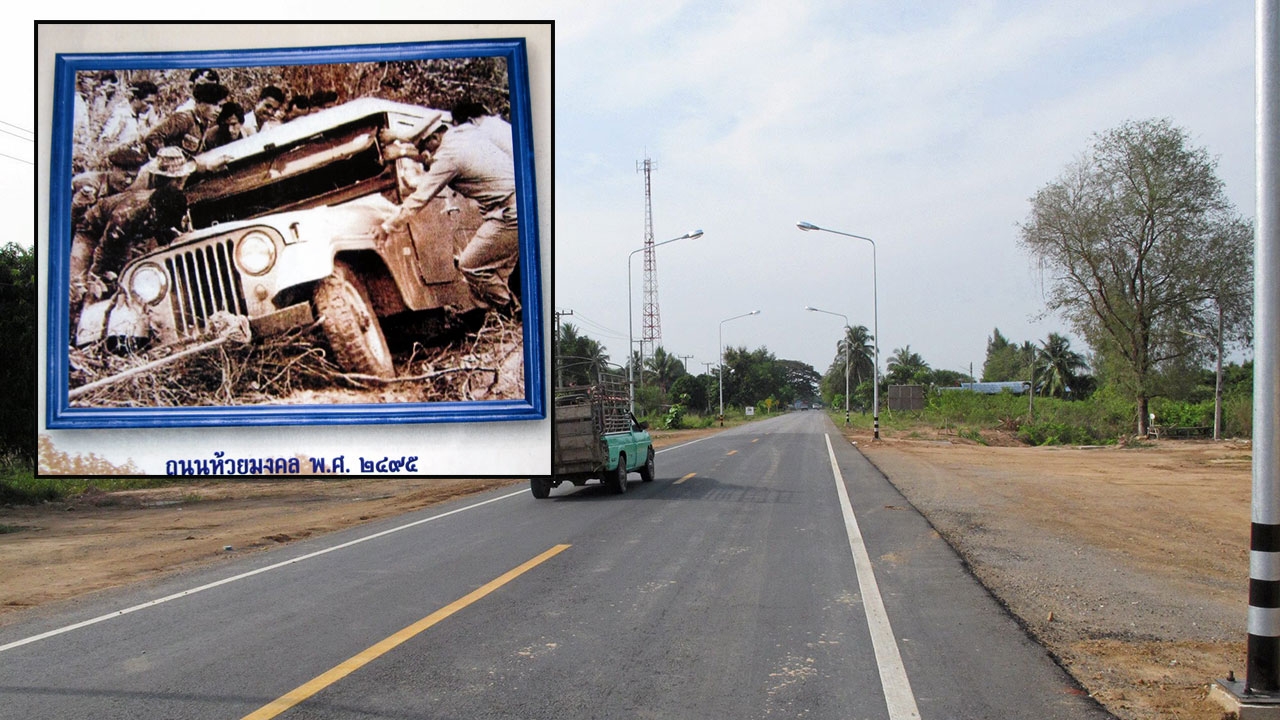เอกสิทธิ์ เล่าต่อว่า มีคนอีกมากที่ยังไม่รู้ว่า "ถนนห้วยมงคล" นั้น เป็นโครงการพระราชดำริแห่งแรกของประเทศ สมัยก่อนถนนเส้นนี้เป็นทางเกวียน เล็กๆ ชาวบ้านจะนำพืชผลในสวนในไร่ไปขายในเมือง ระยะทางแค่ 20 กิโลเมตร แต่ต้องใช้เวลาเดินทางนานเกิน 1 วัน กว่าจะถึงผักพืชผลก็สุกงอมเน่าเสียหาย ในปี พ.ศ. 2495 พระบาทสมเด็จพระเจ้าอยู่หัว รัชกาลที่ 9 และสมเด็จพระนางเจ้าสิริกิติ์ พระบรมราชินีนาถ เสด็จฯโดยรถจี๊ปพระที่นั่งสำรวจความเป็นอยู่ของประชาชนในหมู่บ้านนี้ และรถเกิดติดหล่มหน้าบ้าน ลุงรวย งามขำ ซึ่งปัจจุบันสถานที่ที่รถตกหล่ม อยู่ข้างวัดห้วยมงคล สถานที่ประดิษฐานหลวงพ่อทวดองค์ใหญ่ พระนามาภิไธยย่อ สก.