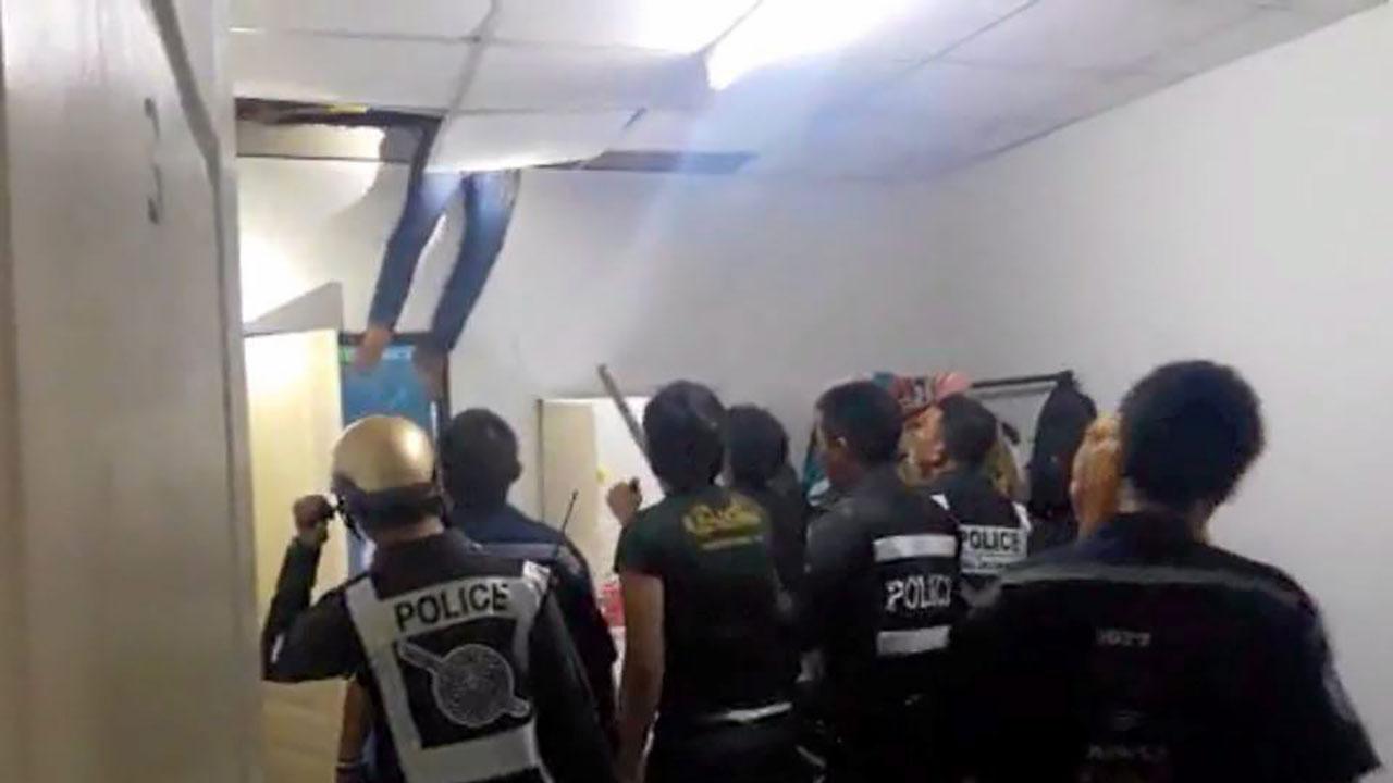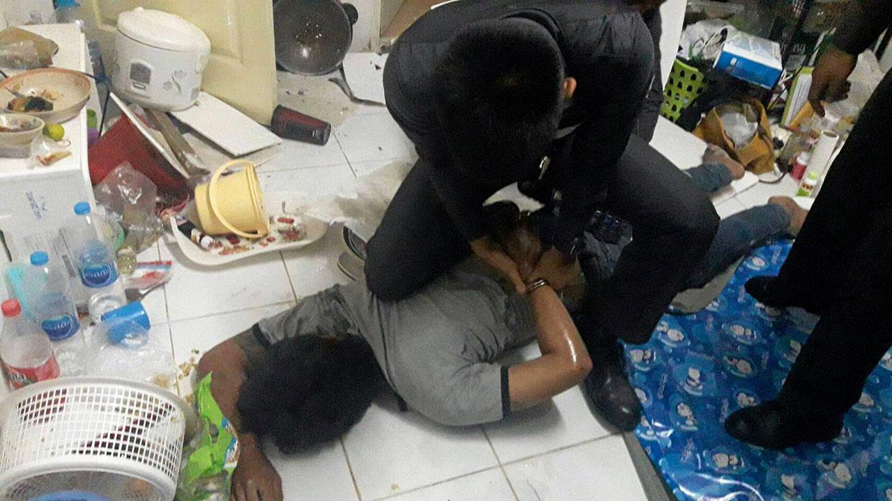 ที่เกิดเหตุ เป็นห้องแบ่งให้เช่าชั้นเดียว มีเสียงโวยวายดังจากห้องเลขที่ 3 จึงเข้าไปในห้อง พบหญิงสาว 2 คน อายุ 23 และ 25 ปี เป็นสาวเวียดนาม ยืนอยู่ในอาการตื่นกลัว แจ้งว่ามีชายคนหนึ่งหลบอยู่บนฝ้าเพดาน เมื่อเจ้าหน้าที่เรียกให้ลงมา ยังพยายามหลบหนี เจ้าหน้าที่จึงตัดสินใจพังฝ้าเพดานจนชายคนดังกล่าวร่วงตกลงมา ถูกจับกุมคุมตัวมาสอบสวน