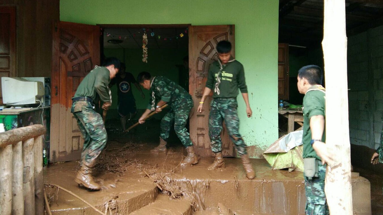 จากกรณีสถานการณ์น้ำป่า และฝนตกลงมาอย่างในพื้นที่ อ.แม่แตง และ อ.เชียงดาว จ.เชียงใหม่ ตั้งแต่คืนวันที่ 11 พ.ย.จนตลอดทั้งวันที่ 12 พ.ย. โดยมีอำเภอแม่แตง หมู่บ้านช้าง ต.บ้านช้าง และหมู่บ้านสันปูเลย ต.แม่แตง และใน ต.เชียงดาว อ.เชียงดาว ได้รับความเสียหายอย่างหนักจากดินโคลน และซากต้นไม้กิ่งไม้ที่เข้าถล่มหมู่บ้าน โดยเฉพาะหมู่บ้านสันปูเลย ได้รับความเสียหายถึง 80 หลังคาเรือน บ้านช้าง 14 หลังคาเรือน ไร่นาเรือกสวนจำนวนมาก และที่บ้านช้างมีควาญช้างหายไปจำนวน 2 คน ยังไม่สามาถจะหาตัวพบเพราะซากเศษไม้กองมหึมา และดินโคลนที่ถูกน้ำพามากองใหญ่ไปหมด ทางสํานักงานป้องกันและบรรเทาสาธารณภัยจังหวัดเชียงใหม่ ได้ร่วมกับฝ่ายทหาร และหน่วยกู้ภัยเร่งค้นหาผู้สูญหายนั้น