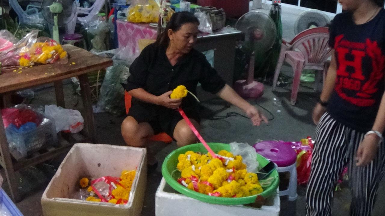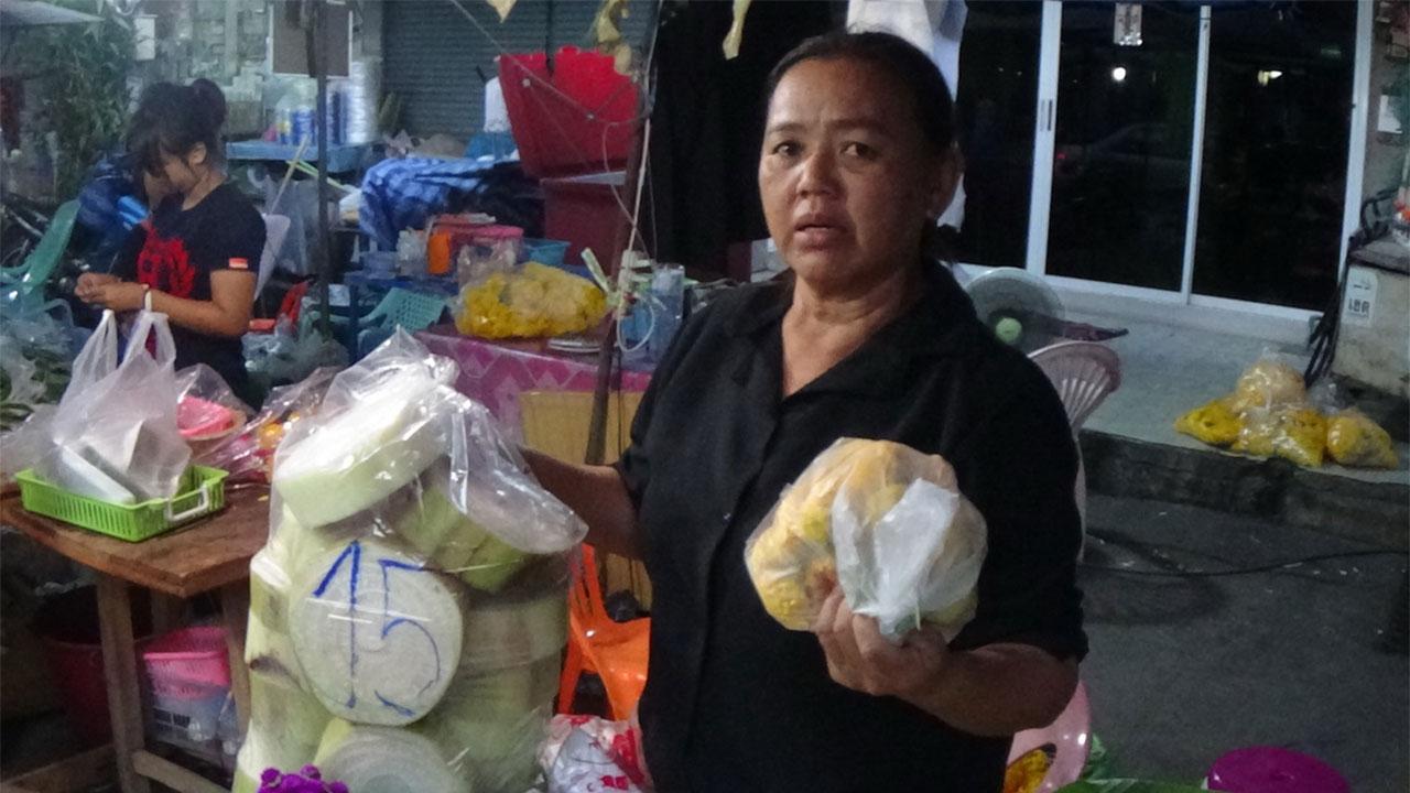 “วัสดุที่ใช้ทำและประดับกระทง เช่น หยวกกล้วย ขายอยู่ราคา 15 บาท จาก 20 บาท ใบตอง กิโลกรัมละ 15 บาท ดอกพุทธรักษา ถุงละ 15 บาท ดอกบานไม่รู้โรย กำละ 10 บาท ดอกดาวเรือง 50–60 สตางค์ ซึ่งราคาวัสดุที่ใช้ทำกระทงทั้งหมดราคาถูกกว่าเมื่อปีที่แล้วเกือบเท่าตัวเลยทีเดียว แต่ลูกค้าที่เข้ามาซื้อยังต่อราคาจนเกือบจะขาดทุน ได้กำไรเพียงเล็กน้อย แต่ก็จำเป็นที่จะต้องขาย เพราะถ้าทิ้งไว้ วัสดุต่างๆ จะเน่าเสีย ทำให้ขาดทุนมากกว่าเดิม” นางวิภา กล่าว.