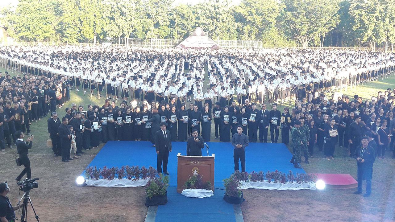 ชาวด่านช้าง จ.สุพรรณบุรี รวมถึงชาวกะเหรี่ยงกว่า 1 หมื่นคน ร่วมกิจกรรมแสดงความอาลัยในหลวง ร.9 "จุดเทียน ส่องไฟ ส่งพ่อสู่สวรรคาลัย" แปรขบวนเป็นรูปหัวใจตรงกลางเป็นเลข ๙ มีลูกทุ่งสาว เปา เปาวลี พร้อมศิลปินไทยรัฐทีวี ร่วมร้องเพลง...