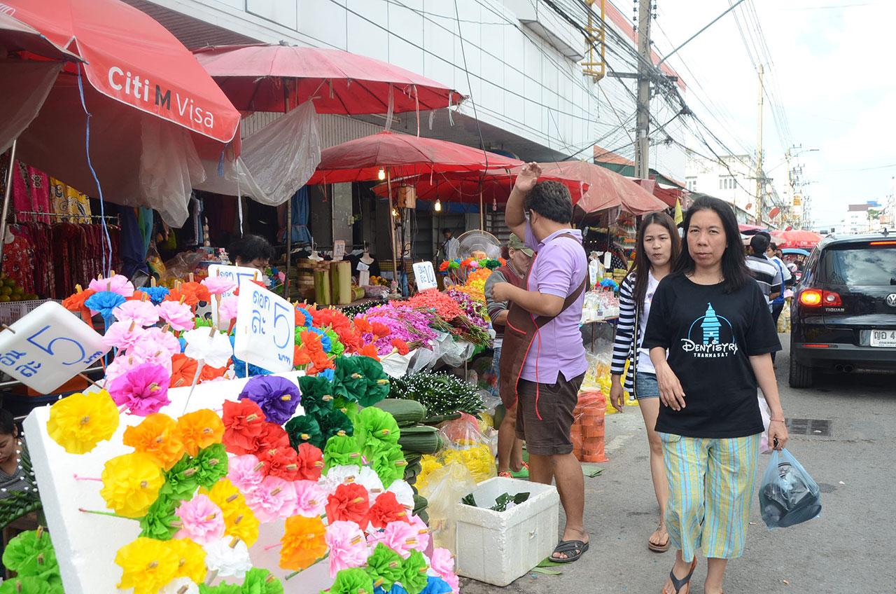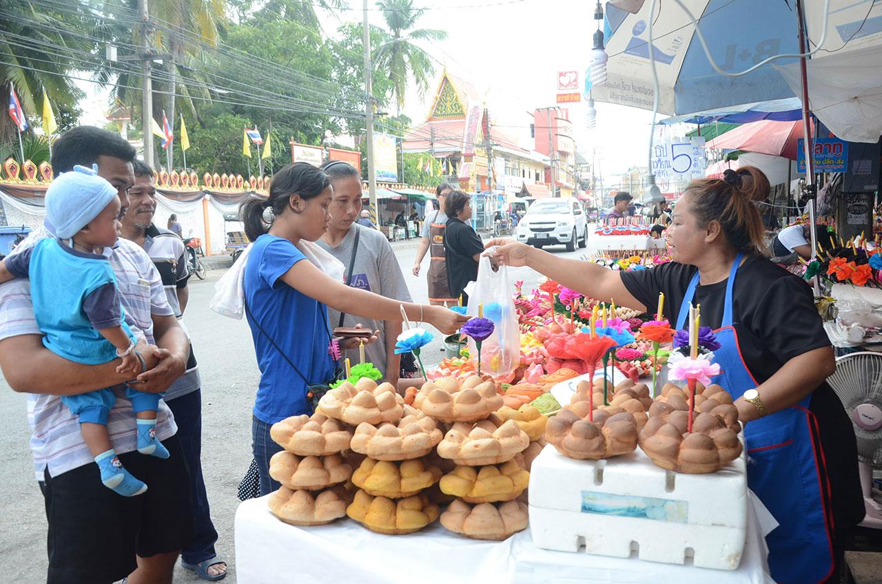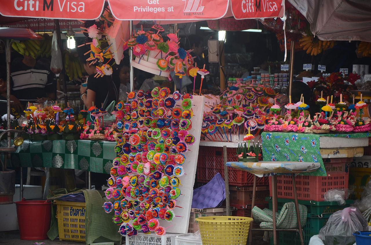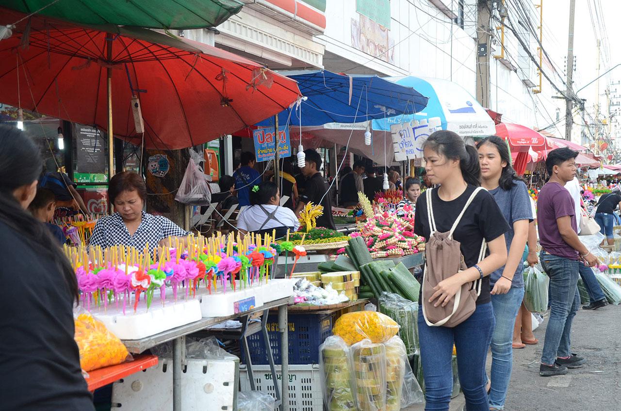 ขณะที่การจำหน่ายกระทงในเขตเทศบาลนครนครราชสีมา บรรดาพ่อค้า แม่ค้าตามตลาดสด อาทิ ตลาดใหม่แม่กิมเฮง, ตลาดย่าโม, ตลาดดอนขวาง เป็นต้น มีการนำกระทงต่างๆ มาวางจำหน่ายเต็มพื้นที่ เช่น กระทงขนมปัง ราคาตั้งแต่ 30–35 บาทจนไปถึง 100–300 บาท, กระทงใบตองแบบพอเพียงมีราคา 20–50 บาท รวมทั้งหยวกกล้วยชิ้นละ 5-10 บาท ส่วนใบตองขายมัดละ 100 บาท ดอกไม้ สีม่วง สีเหลือง สีฟ้า สีชมพู สีส้ม ช่อละตั้งแต่ราคา 20–100 บาท และดอกไม้กระดาษหลากสี ลายธงชาติ และสีสำสลับขาว พร้อมธูปเทียน ทุกชิ้นราคา 10 บาท ซึ่งผู้ประกอบการต่างพูดเป็นเสียงเดียวกันว่า เทศกาลลอยกระทงปีนี้ไม่ค่อยคึกคัก กระทงต่างๆ ก็ขายไม่ดี ขายไม่ออก โดยเฉพาะปีนี้ภาครัฐ ภาคเอกชน องค์กรปกครองส่วนท้องถิ่น เทศบาลนครนครราชสีมา เทศบาลตำบล องค์การบริหารส่วนตำบล ซึ่งทุกคนเข้าใจเพื่อเป็นการแสดงความอาลัย พระบาทสมเด็จพระปรมินทรมหาภูมิพลอดุลยเดช ฉะนั้นจึงงดกิจกรรมงานแบบมีมหรสพสมโภชรื่นเริง ไม่มีการแสดงแสง สี เสียง ไม่มีการจุดพลุ หรือการประกวดต่างๆ