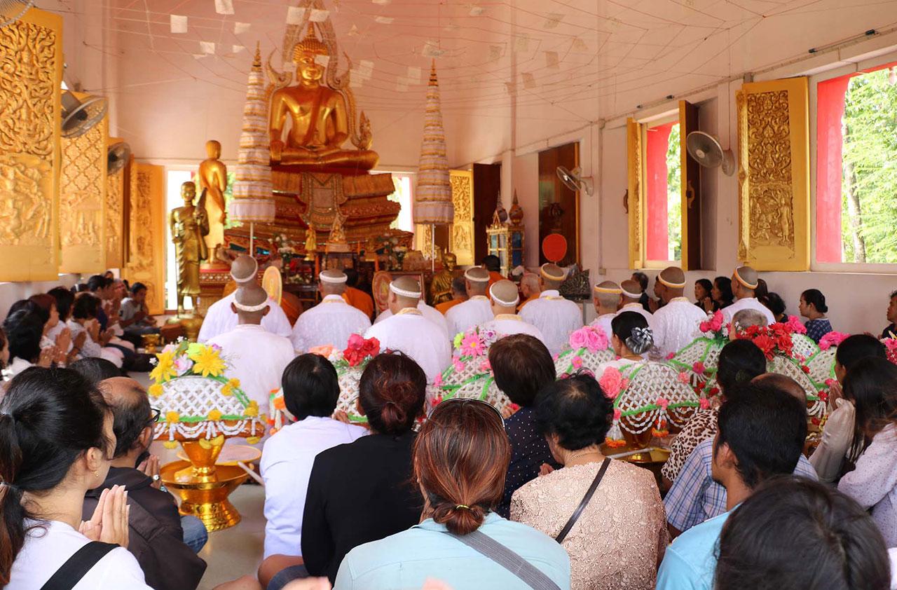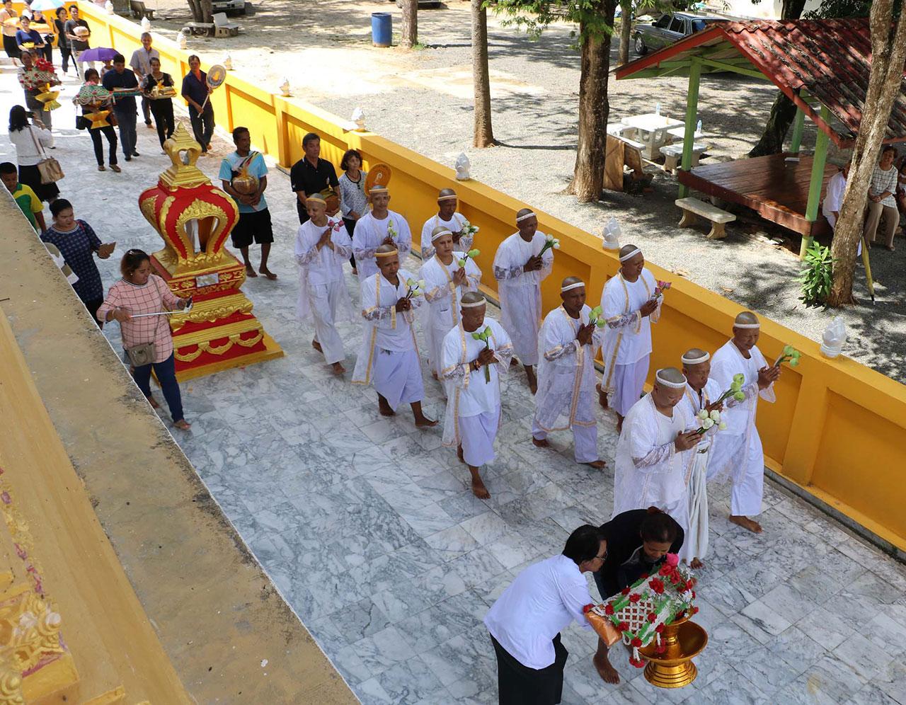 ทั้งนี้เป็นการบวชพระ 11 คน และบวชสามเณร 1 คน รวมเป็น 12 คน และในจำนวนนี้บางคนต้องการที่จะบวชเกิน 15 วัน ซึ่งบรรยากาศในพิธีเต็มไปด้วยความเปี่ยมสุขเนื่องจากมีประชาชนพร้อมใจกันนำอาหารคาวหวานมาร่วมในพิธีครั้งนี้เพื่อร่วมทำบุญถวายเป็นพระราชกุศลด้วย สำหรับผู้ที่บวชมีทั้งทหาร ครู นักเรียน และประชาชนทั่วไปที่ลาราชการและลางานมาบวชทำความดีเพื่อพ่อ ถวายเป็นพระราชกุศล.
