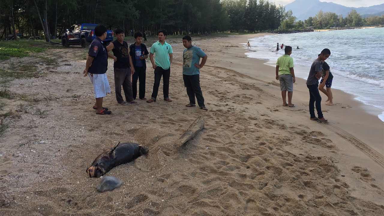 เมื่อเวลา 20.00 น. วันที่ 13 พ.ย. ที่หาดสวนสน ติดกับอนุสาวรีย์กรมหลวงชุมพร บ้านฝ่ายท่า หมู่ 1 ต.ทุ่งใส อ.สิชล จ.นครศรีธรรมราช นายสมหมาย ชลสินธุ์ ประธานหน่วยกู้ภัยสิชล พร้อมด้วยอาสาสมัครพื้นที่อำเภอสิชล ได้เดินทางไปตรวจสอบหลังจากที่ได้รับแจ้งจากชาวบ้านว่ามีซากโลมาเกยตื้นตายที่ริมหาดสวนสน
