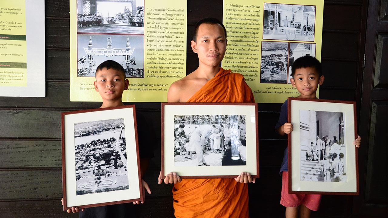 พบภาพประวัติศาสตร์ล้ำค่า หลังมีการเปิดซ่อมแซมกุฏิเก่าวัดมณีวนาราม ค้นพบภาพถ่ายมุมสูง ปะรำพิธี รูปพระปรมาภิไธย ภปร รับเสด็จพระบาทสมเด็จพระปรมินทรมหาภูมิพลอดุลยเดช เสด็จฯประพาสอุบลราชธานีและอีสานครั้งแรก ปี 2498...